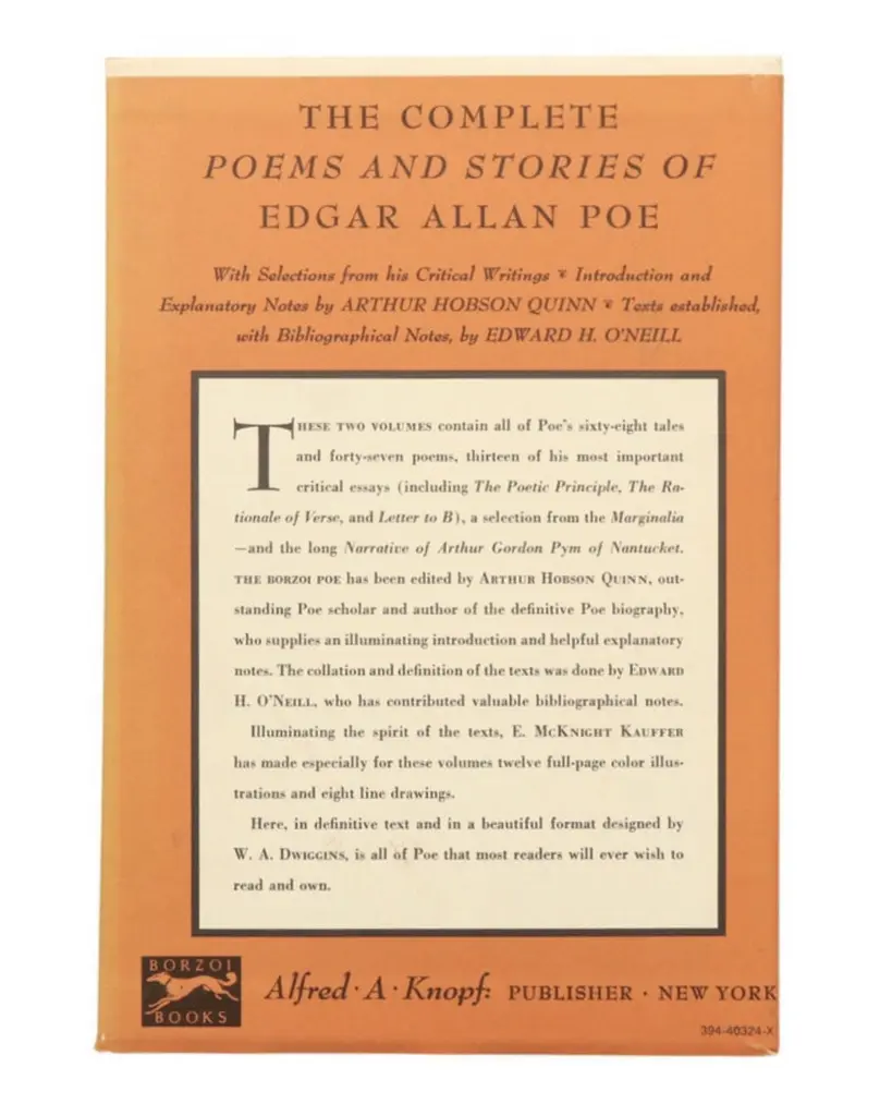 The Borzoi Poe, two volume boxed set. The complete poems and stories of Edgar Allan Poe. Published in 1982 by Alfred A. Knopf of New York.