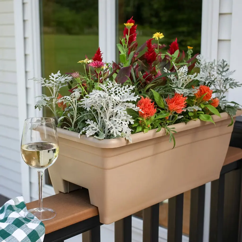 These durable deck rail planters will be long-lasting for seasons to come, with a modern and sleek look that will go with all your decor. These planters for outdoor plants will fit both 4-inch and 6-inch wide deck rails, great for any type of wooden, vinyl, or metal railings. Each balcony railing planter has a liquid capacity of 6.60 gallons and easily removable drain plugs, drainage will no longer be an issue while keeping your deck water free. The outdoor planters feature thick and durable wall construction that resists long-term damage. And, the simple color tone of these planter boxes makes them perfect for outdoor flowers, herbs, or succulent displays. Give your deck the attention it deserves with these The HC Companies Heavy-Duty 24-Inch Deck Rail Box Planters.