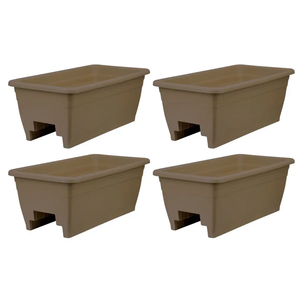 The Hc Companies 24 Inch Wide Heavy Duty Plastic Deck Rail Mounted Garden Flower Planter Boxes With Removable Drainage Plugs, White (4 Pack)