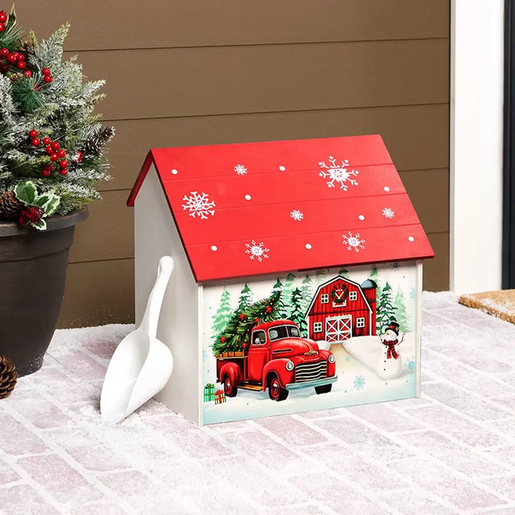 The Lakeside Collection Holiday Decorative Outdoor Salt Box Storage With Scoop - Red Truck