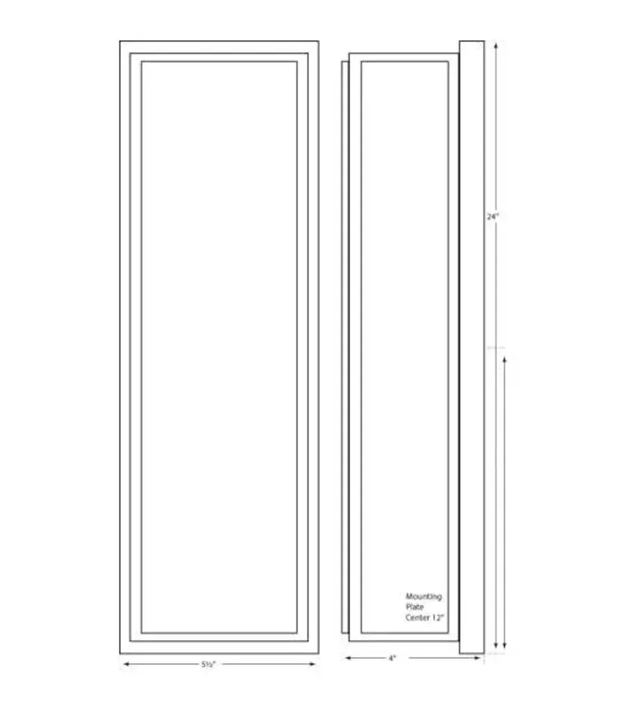 Mercer Long Box Light in Bronze with White Glass Designer: Thomas O'Brien Height: 24" Extension: 4" Backplate: 5.5" x 24" Rectangle Mounting: Hardwire Shade Detail: White Glass Socket: 3 - E26 Keyless Wattage: 3 - 60 T10 Safety Rating Location: DAMP