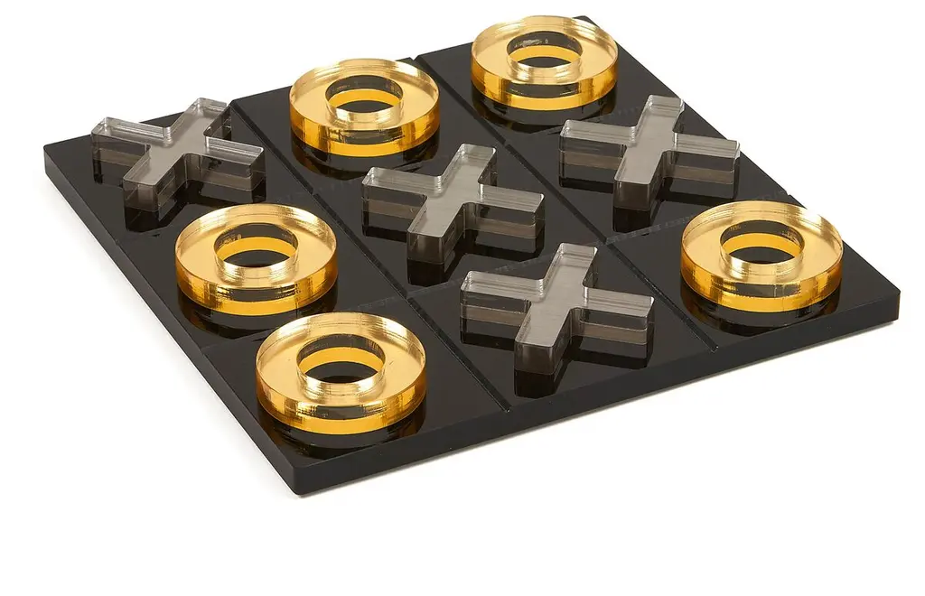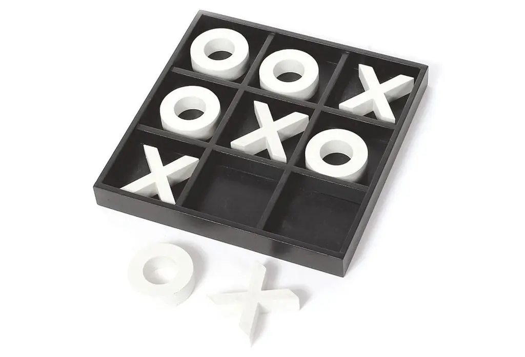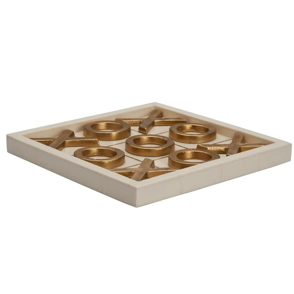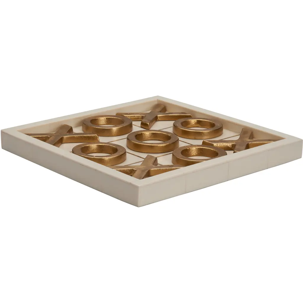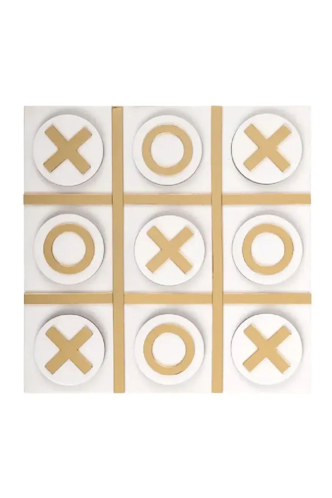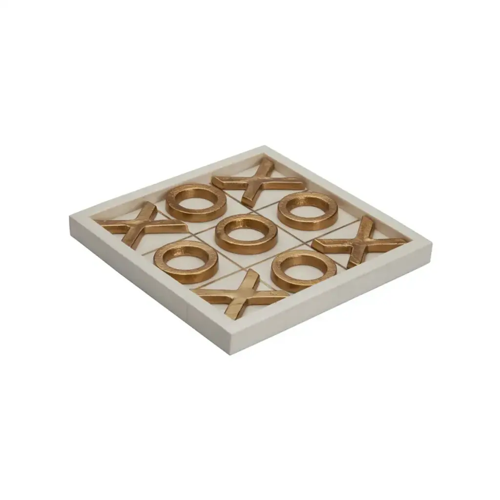 This Tic Tac Toe game features a stylish and sophisticated design, with a sleek white board and gold game pieces. This game combines classic fun with elegant aesthetics.
