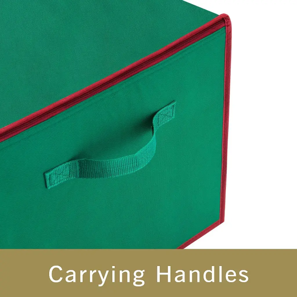 The Ornament Storage Box by Tiny Tim Totes makes it easy to store away those special and irreplaceable Christmas bulbs and decorations. This cube-shaped ornament chest has adjustable dividers that can be arranged to create up to 75 individual compartments. The storage container features a sturdy construction, stitched seams, side handles, a stackable design and a flip-top zippered opening for easy access.