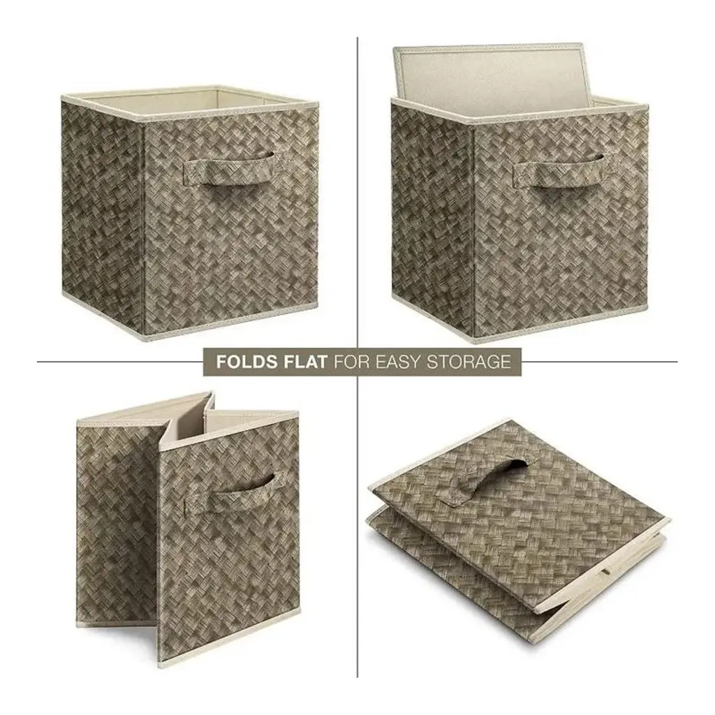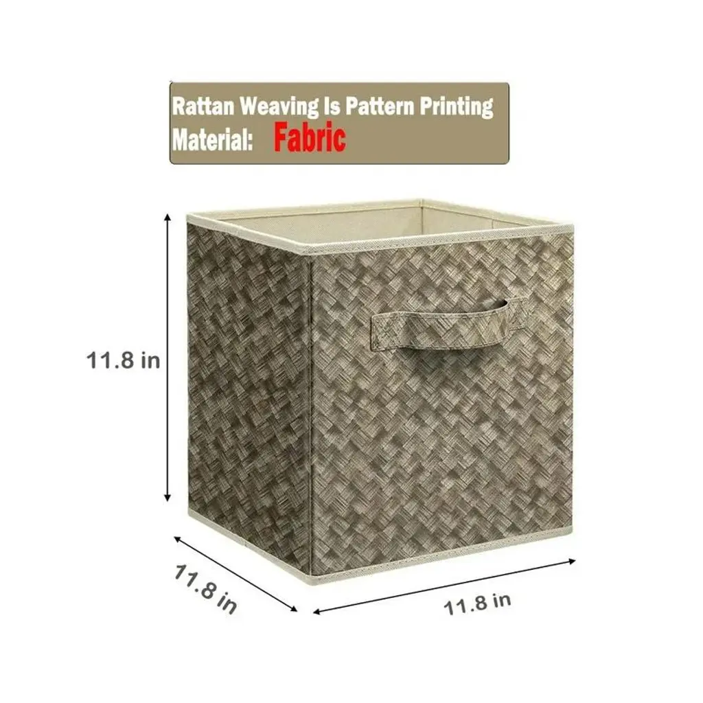 Easy Storage: This WERSEON Cube Storage Organizer Bins are super easy to fold and store compactly when not in use. Quickly unfold to store various gift baskets or for organizing. items. Set of 6: Includes 6 baskets, each with a large size, perfect for use as empty Eco-Friendly: Made with eco-friendly materials that are sturdy yet breathable, lined with thin muslin fabric. Versatile Use: Ideal for closet organization, keeping clothes and household items in order. Attractive Design: Features a rattan weaving look printed on the front, adding a decorative touch to your storage solutions. High Capacity: Foldable 12-inch large cube storage bins with handles,d suitable for various storage needs. Multi-Purpose: Perfect for living room, toy room, bedroom, and general storage like pantry dry goods, linen, towels, and groceries in the car.