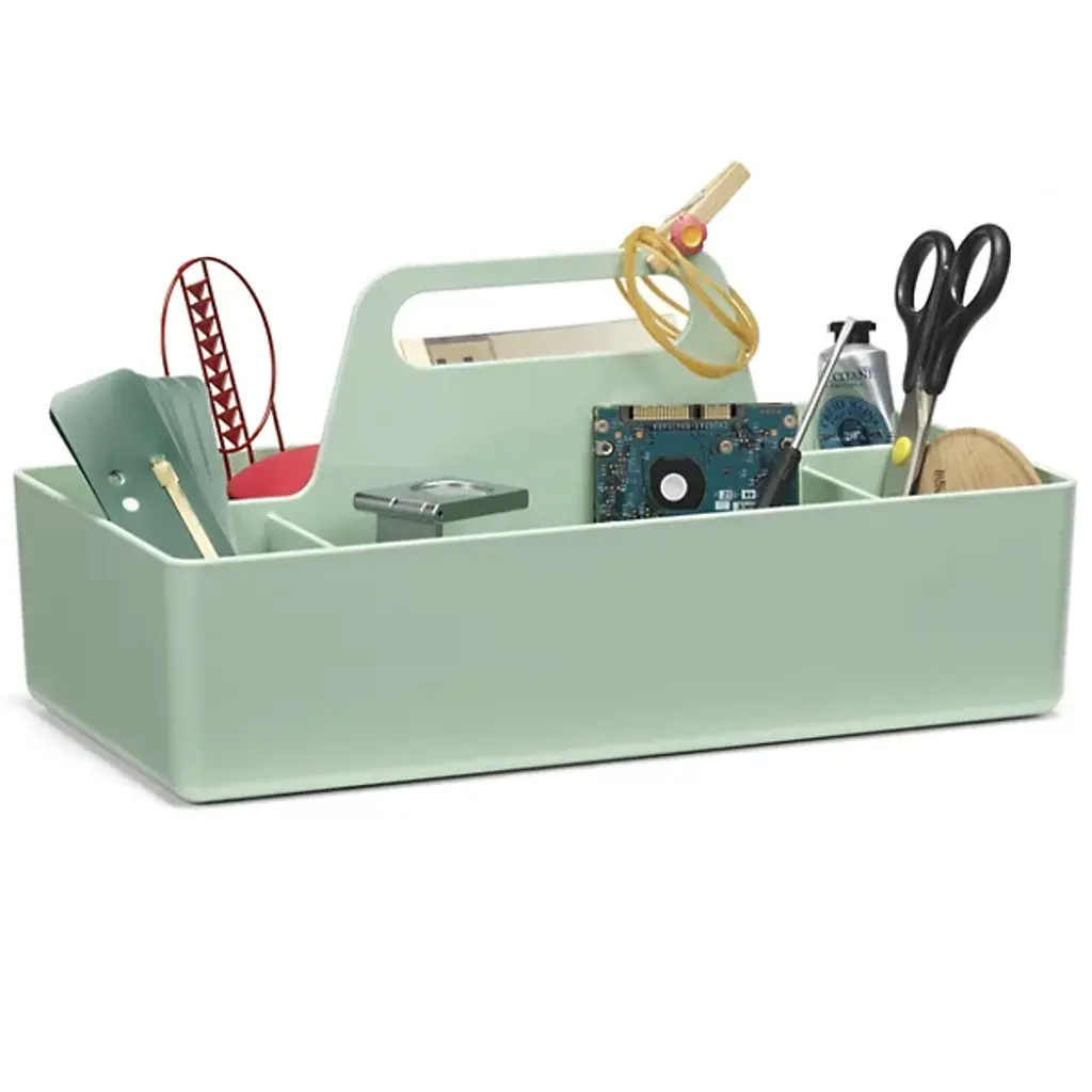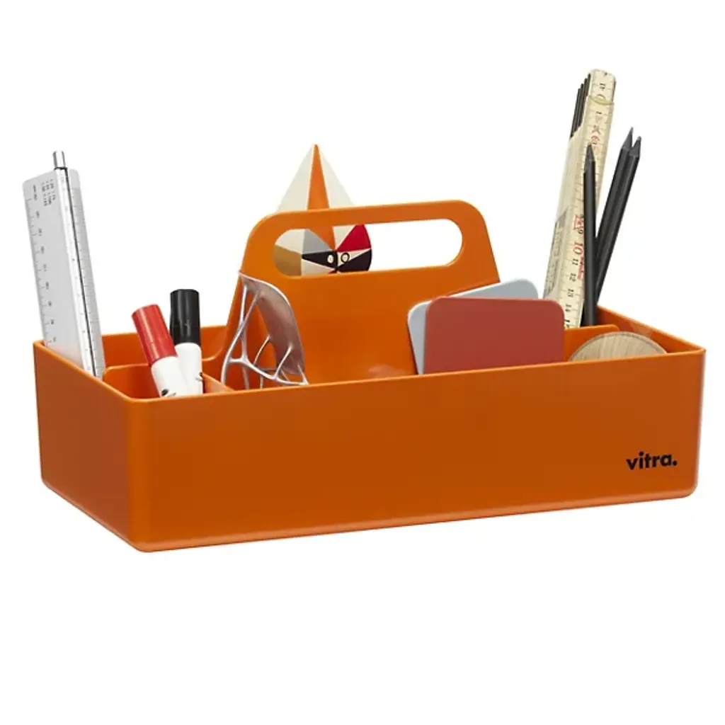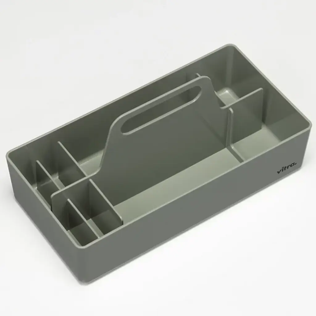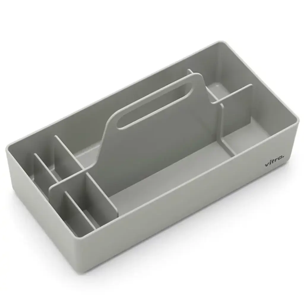 The Toolbox RE from Vitra gives one a hand on demanding tasks or helps one store for a tidier space with a clean contemporary design. Creator Arik Levy's work is an exploration of symbols. Levy finds the essence of each design, arriving in pieces that are easy to understand. The toolbox reflects this sentiment with a geometric composition. Slender dividers give items big or small their place for easy plucking. The strong abs plastic piece produces an elegant handle for enhanced mobility.