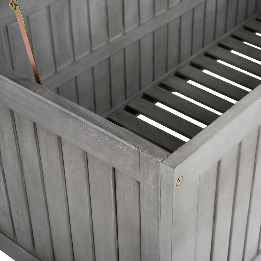 Inspired by a classic resort in North Carolina, this cushion box brings charm and grace to any outdoor room. Designed for ample storage, its eucalyptus wood craftsmanship ensures it will be enjoyed for generations.
