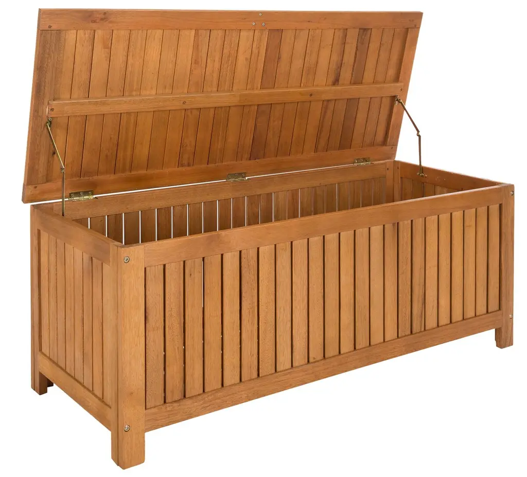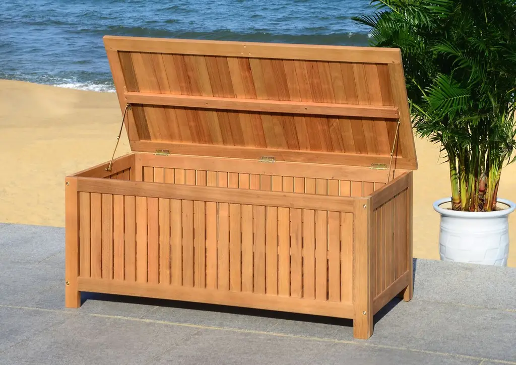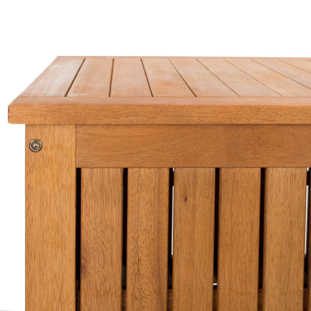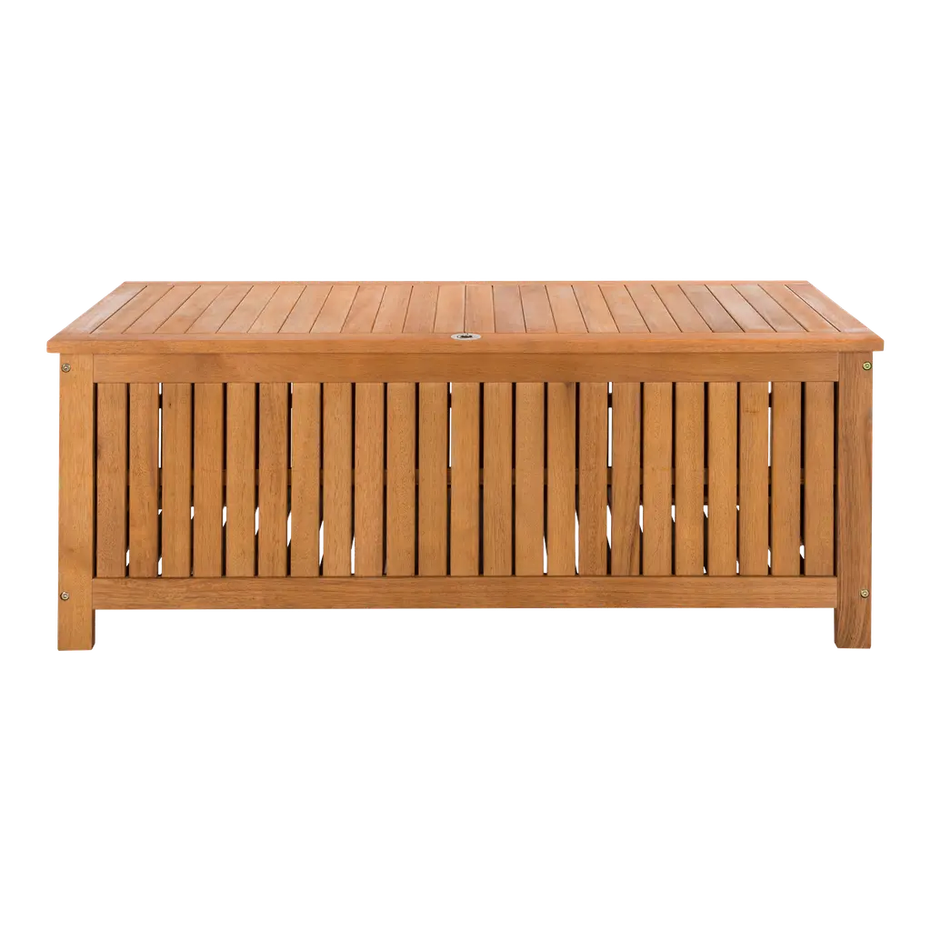 Inspired by a classic resort in North Carolina, this cushion box brings charm and grace to any outdoor room. Designed for ample storage, its eucalyptus wood craftsmanship ensures it will be enjoyed for generations.