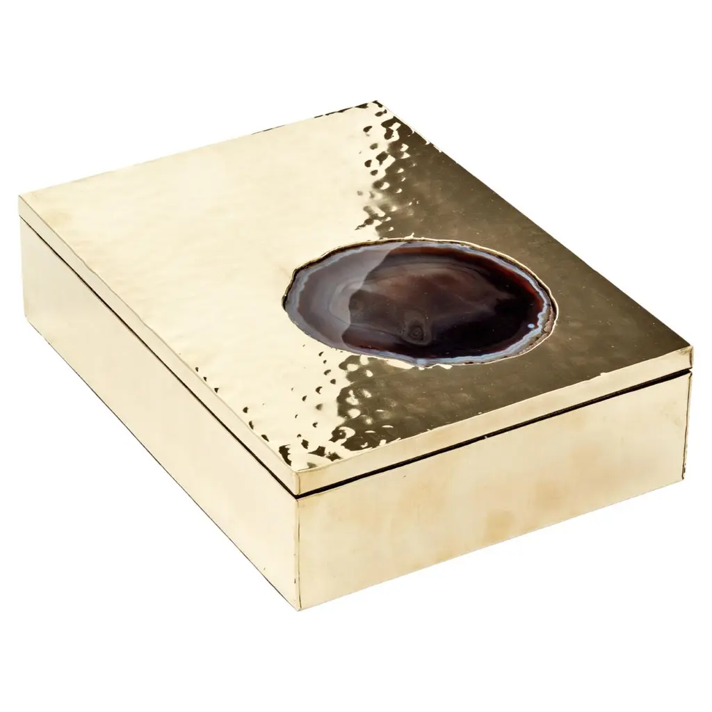 The Tormalina box is a stunning piece that features a unique, organically shaped tourmaline stone, highlighting its natural beauty. Measuring 20 x 20 x 16 cm, this exquisite box is crafted from protected brass, providing durability and elegance. The interior is beautifully finished with glossy black lacquered wood, creating a striking contrast that enhances the overall aesthetic. Perfect for storing keepsakes or as a decorative accent, the Tormalina box combines artistry with functionality.