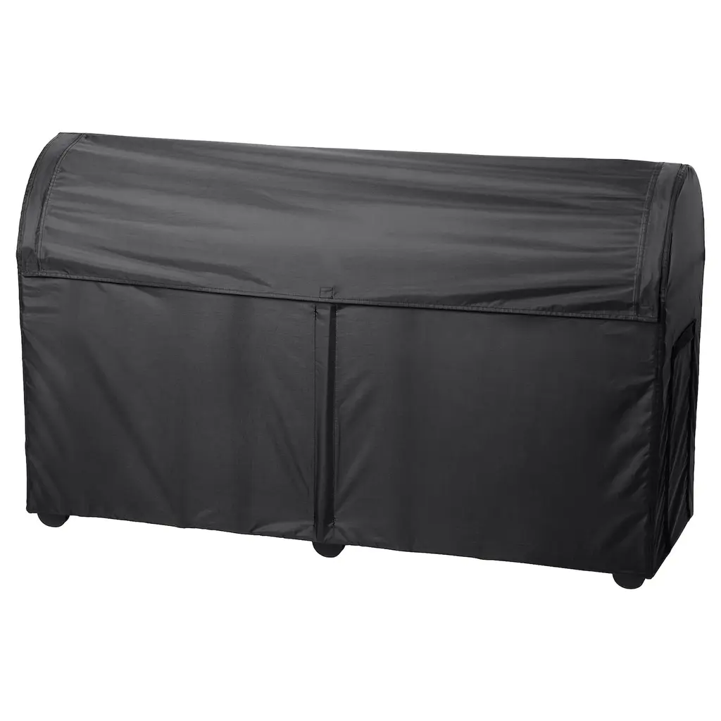TOSTERÖ Storage box, outdoor - black 50 3/4x17 3/8x31 1/8 ". This waterproof storage box protects your outdoor pads and cushions from rain, sun, dirt, dust and pollen and helps you keep them organized when they’re not being used. Handles make it easy to move. Waterproof rating: 32 ft.