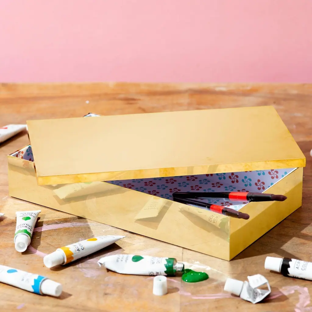 Organize your small items in style with our elegant rectangular-shaped brass box. Made from high-quality brass, its unique and stylish design adds sophistication to any space. Perfect for storing jewelry, trinkets, and other small items, it is a functional and decorative addition to your home decor.