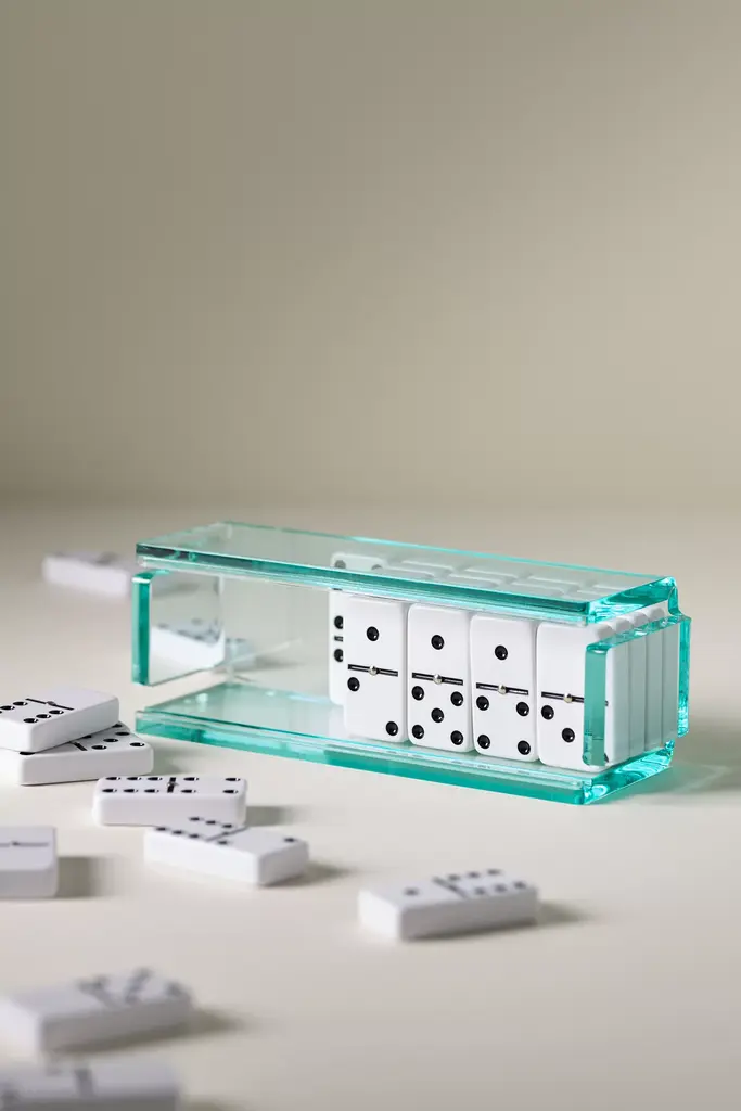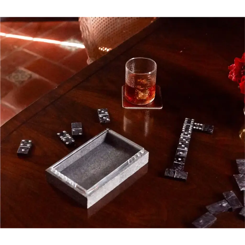Treviso Cool Gray Realistic Faux Shagreen Domino Box Set