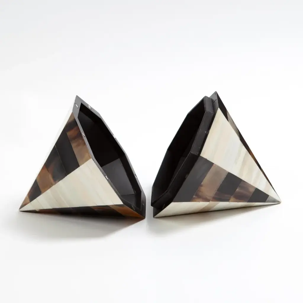 A resin exterior in a geometric pattern features a singular brass diamond accent. The substrate of MDF gives these items strength and stability to hold up over time without warping or movement.
