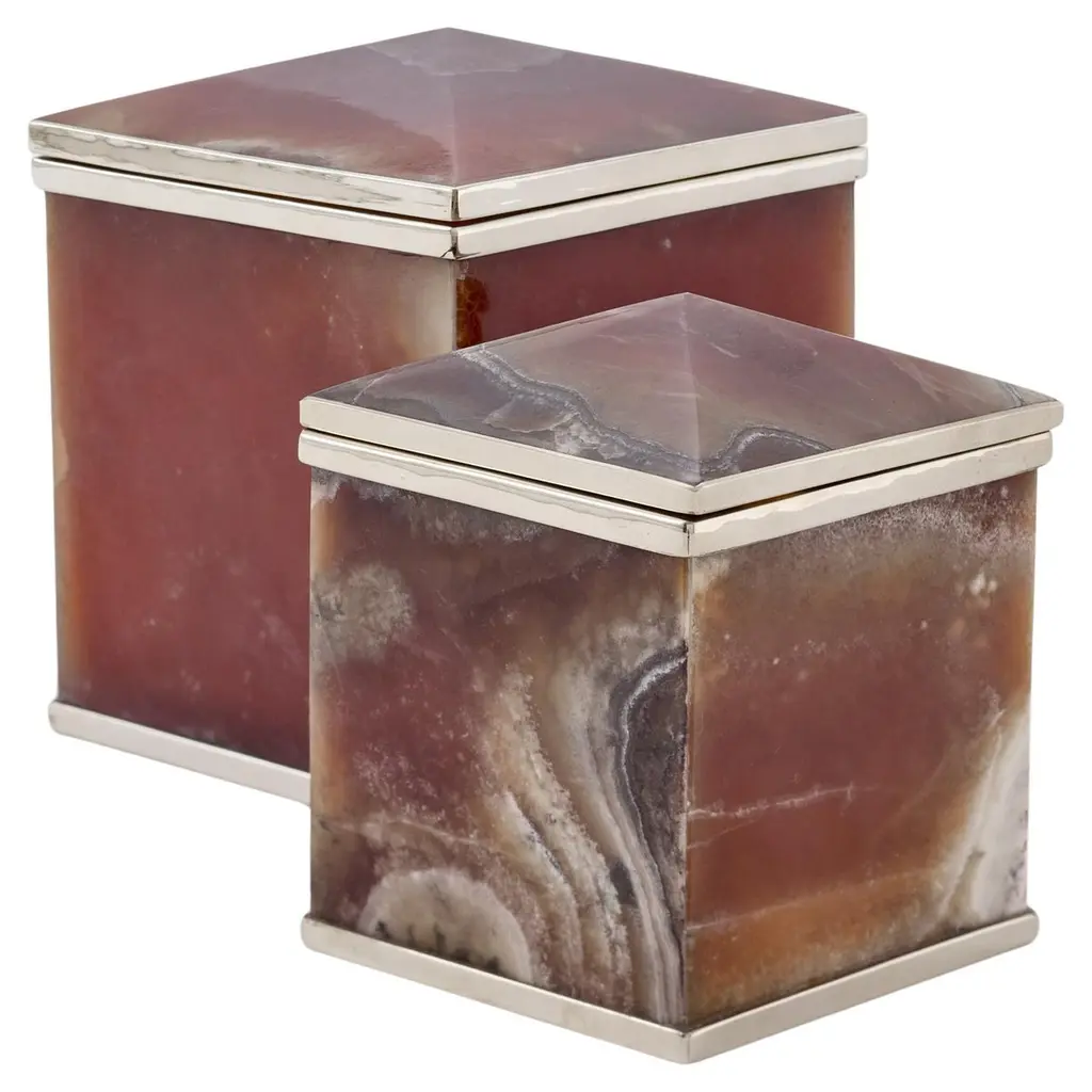 The shape of the inactive Tronador volcano reminded us of the pyramid shaped idea of our boxes that make up this collection. With a rectangular or square base, the box is a reflection of this magnificent inactive mount between Argentina and Chile, a part of the Andes Mountains.Our pieces are made by hand. One of a kind.All natural stones may vary in color.