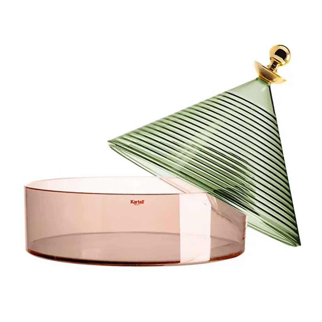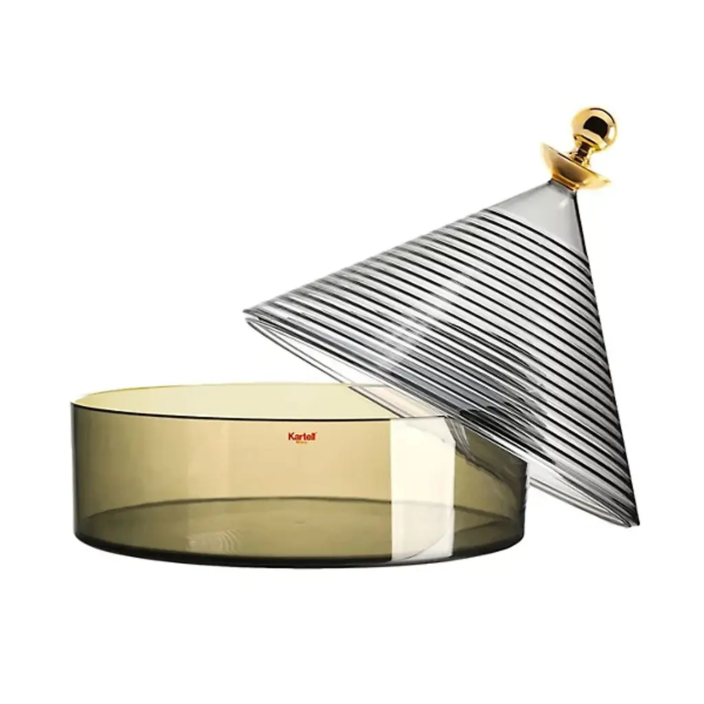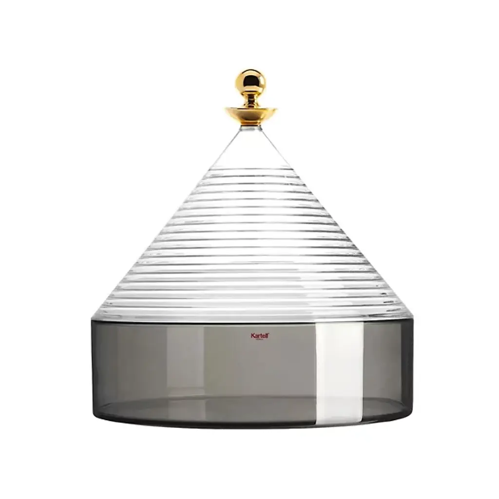 The expressive colors of the Trullo Storage Container from Kartell enhances the allure of any space. Designed by Fabio Novembre in 2018, this piece is reminiscent of the unique, spired dwellings of Alberobello, a small town in Southern Italy. Made of light, transparent metallic thermoplastic, this piece is the ideal choice to add culture and class to the objects held within.