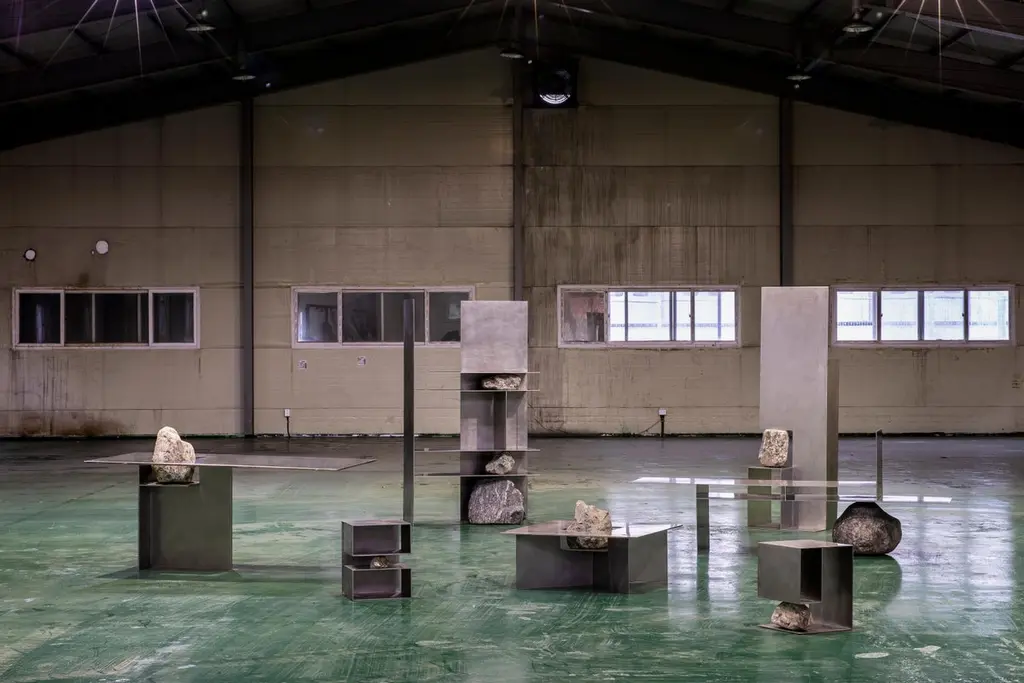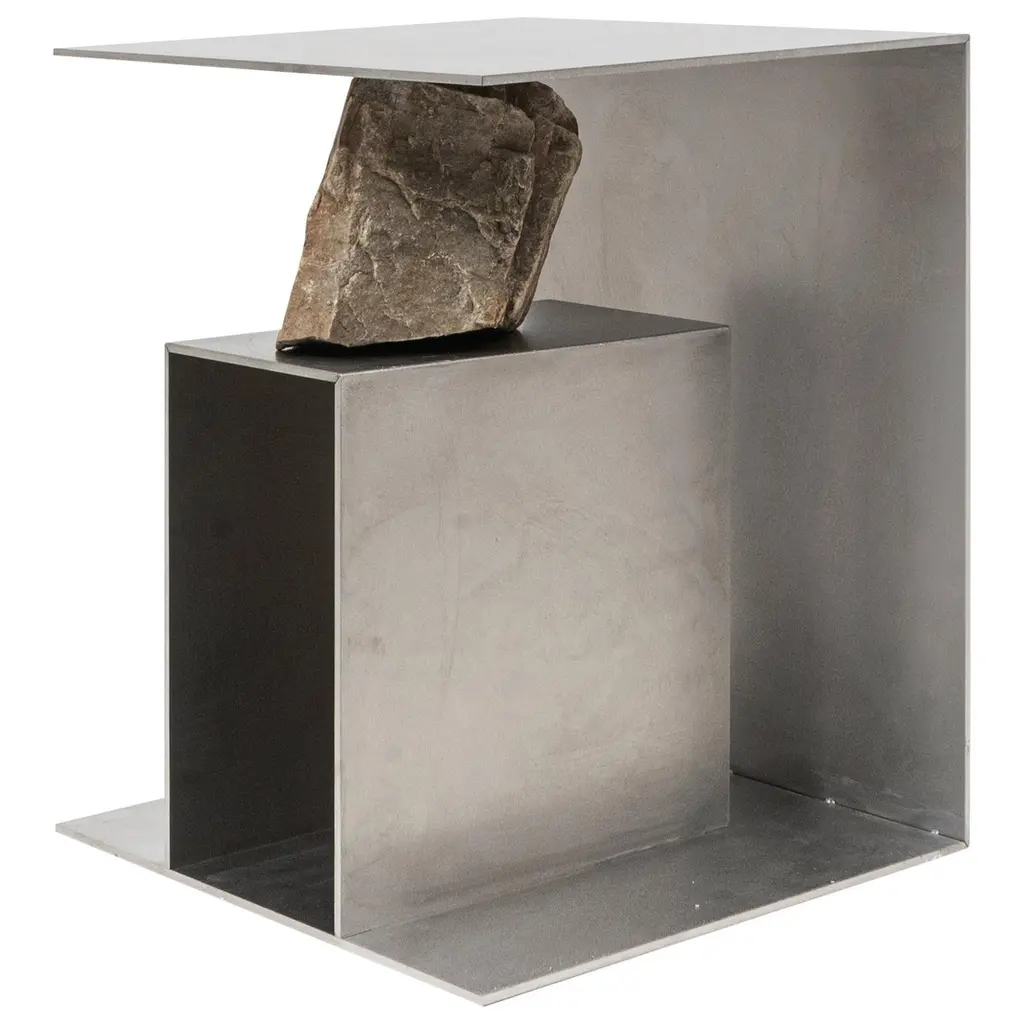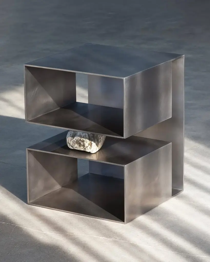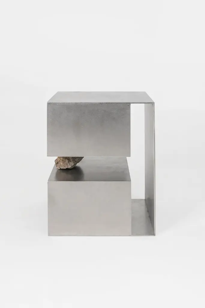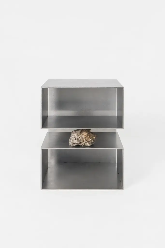 Two Open-Ended Rectangular Boxes Stainless Steel Stool With Stone By Lee Sisan