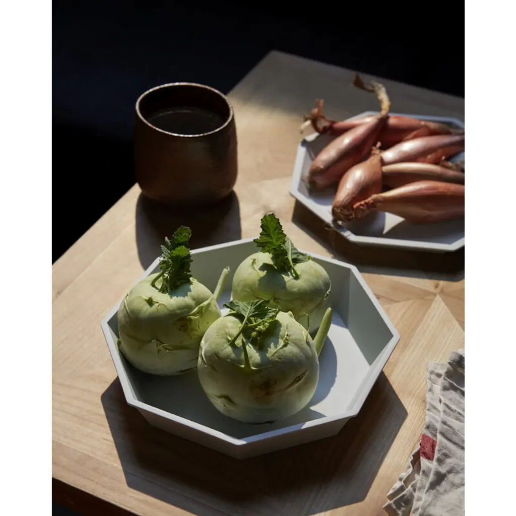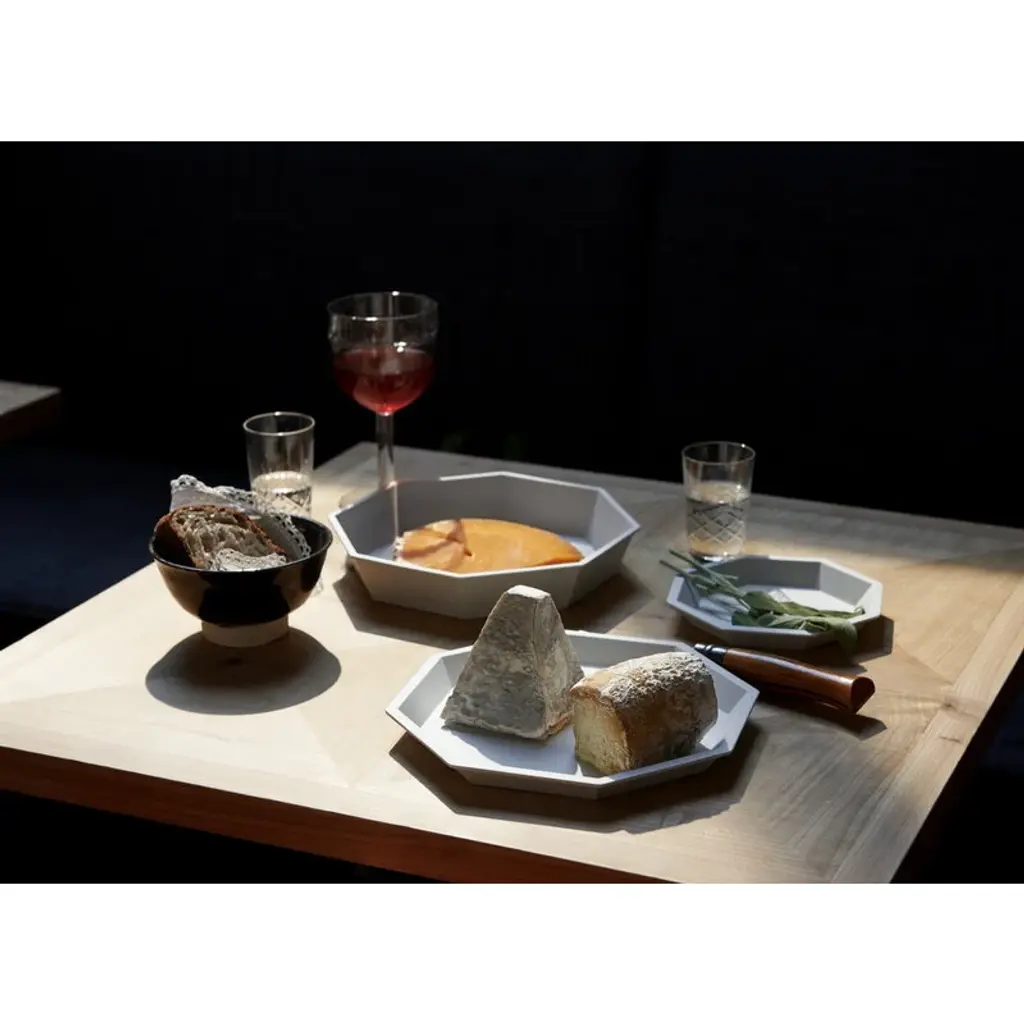 TY Anise 150 bowl by 1616 / arita japan transforms a table setting into a poetical work of art. Designed by Teruhiro Yanagihara, the plate catches the eye with its unusual and playful octagonal shape. The versatile plate finds its place in both day-to-day and festive table settings: it serves not only as a plate for tasty appetizer soup or delicious desserts but also as a tray or serving dish. Outside the kitchen, you can use the small bowl as a storage container for your favorite jewelry and other tiny treasures in the home. The TY Anise porcelain collection is made of clay with a traditional Japanese technique used in the town of Arita for decades. The method and the material make the tableware extremely durable: the unglazed plate is resistant to heat and stains. As the clay used may contain traces of iron, the gray shade of the plates may vary slightly, making each plate totally unique.