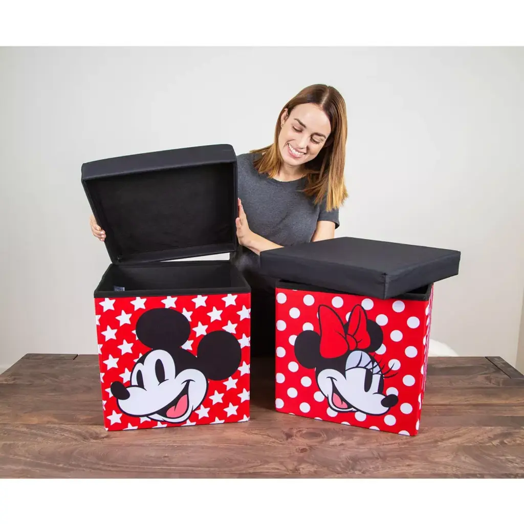 Ukonic Disney Mickey & Minnie 15-inch Storage Bin Cube Organizers With Lids | Set Of 2