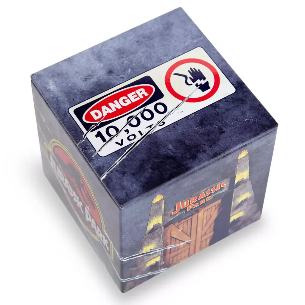 Do not store dinosaurs in this Jurassic Park Storage Tin. Dinosaur action figures, yes. Prehistoric creatures that should be extinct? No. Not even tiny ones. Let this fun dino-themed storage tin help motivate you to stay organized. It'll contain messes on desks, in offices, and wherever clutter happens. Extra USB cables, flash drives, sets of keys, lip balm, paperclips—all these tuck neatly away inside, awaiting a day when they may be reawakened. Every Jurassic Park fan can use one of these because clutter finds a way.