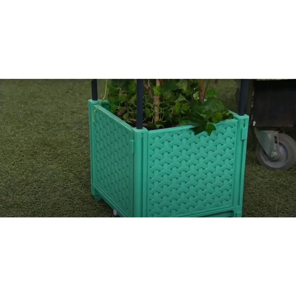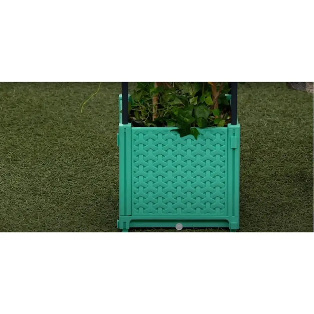 Ultimate Innovations Self-watering Square Indoor Outdoor Planter Box With Trellis Teal 9.84"x9.84"x40.75": Basket-weave, No Tools Needed
