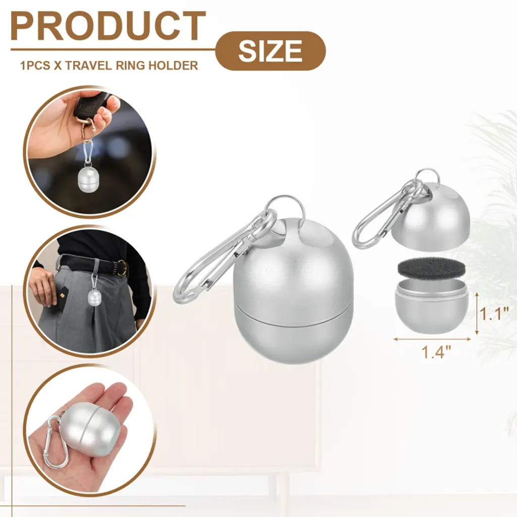This travel ring holder is made of sturdy aluminum alloy, durable enough to withstand impacts without deformation. A spiral structure with good sealing can protect your precious jewelry even in humid conditions. Jewelry holder keychain is designed with a user-friendly grommet that opens with a simple press. Small ring container adaptable design easily attaches to backpacks, key chains, water bottles, or any other convenient location. The sports jewelry holder includes removable padding that turns it into a versatile container for storing small essentials such as tea bags. Its practical design meets a variety of storage needs. The small ring clip keychain is perfect for storing earbuds, jewelry, earrings, necklaces, and more. It is also good to use it as an earbud holder or jewelry holder keychain case. No need to worry about any loss, very high-end and practical.