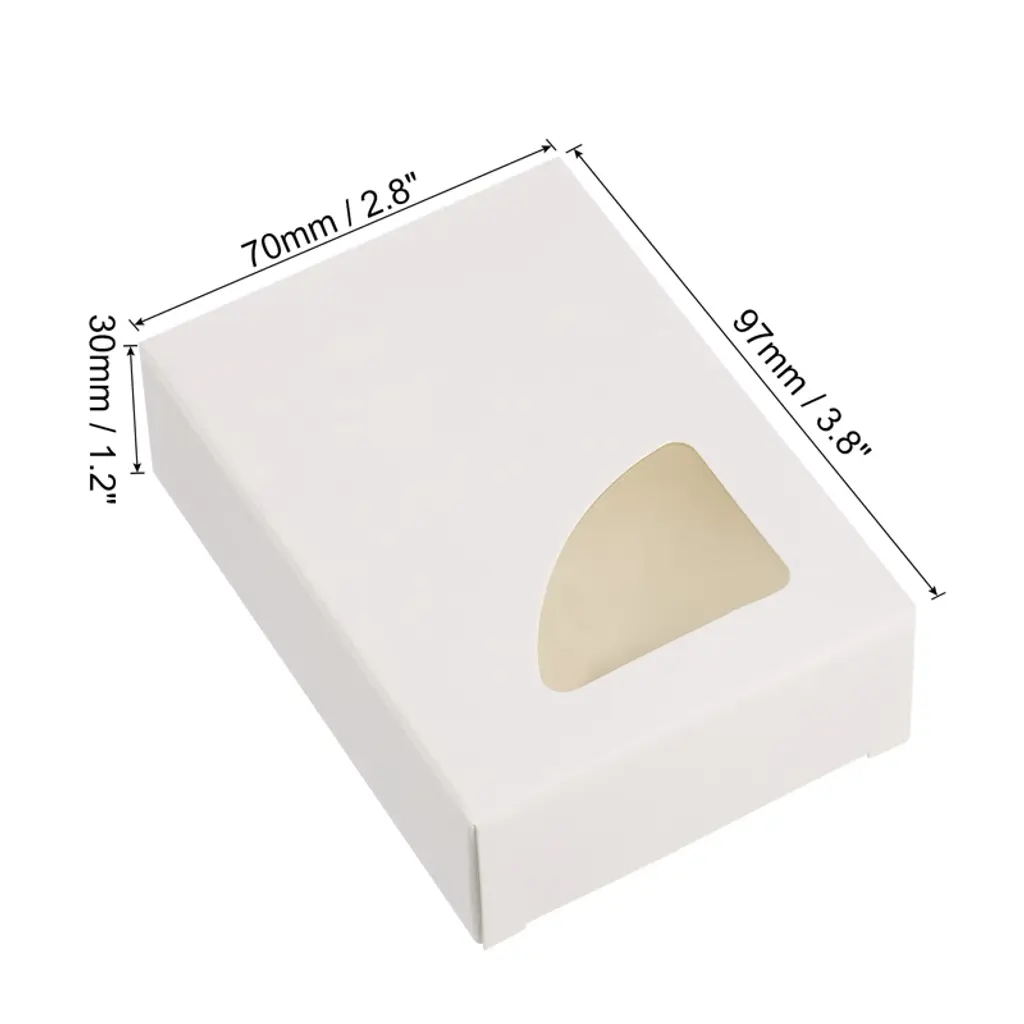 These soap boxes offer a professional packaging solution, perfect for soaps or small items like jewellery. Ideal for gifting on special occasions such as birthdays, anniversaries, or holidays. The clear window design allows easy viewing of contents, while the blank exterior invites personalization with logos or decorations. Constructed from durable paperboard, these boxes maintain their shape and protect contents. Designed for easy assembly, they arrive flat-packed and can be quickly folded into shape. Whether for craft fairs or personal gifting, these boxes add elegance to your presentation.