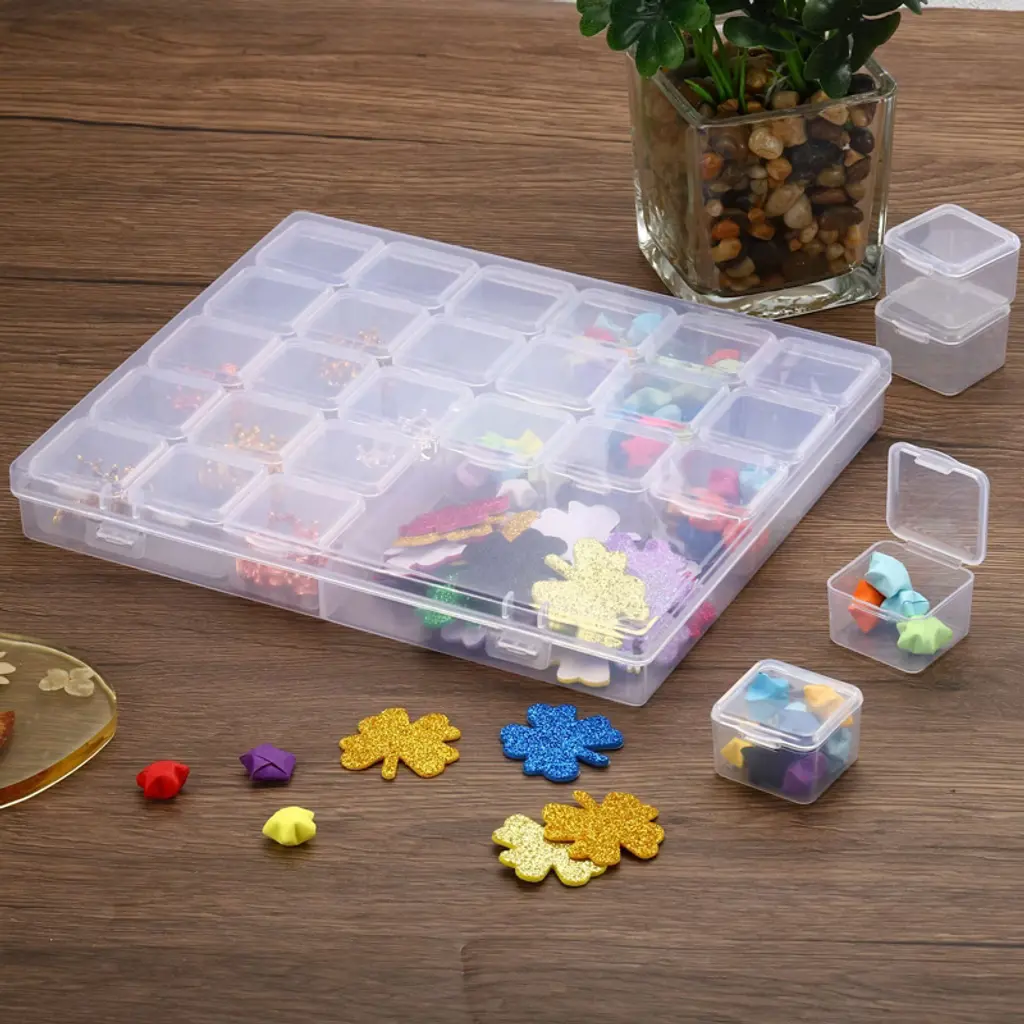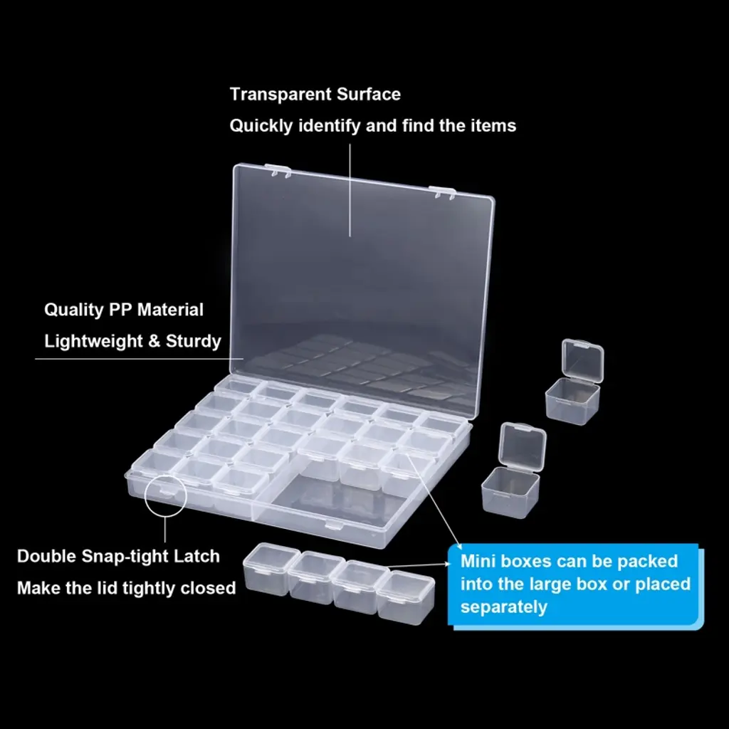 The container box can keep items neatly stored and save storage space, making the items easy to identify. Suitable for displaying and storing small items, such as beads, jewelry findings, bracelets, necklaces, earrings, jewelry accessories, cosmetics, nail arts, elastic ropes, pencils, coins, keychains, fishing hooks, nuts, etc. It can be jewelry-making supplies, hardware packaging boxes, hand-beading storage boxes, office supplies storage boxes, etc. The storage box is made of PP, lightweight, sturdy, and not easy to break for durable use. The storage container adopts a double snap-tight latch design, making the lid tightly closed, dustproof, and not easy to open, securely protecting items. Mini boxes can be packed into the large box or placed separately; the self-adhesive label can be pasted on the mini box to easily identify the items. The transparent storage box lets you quickly identify and find items without opening the box. Clear storage containers can be used as jewelry accessories storage boxes to store different handmade accessories, such as beads, lobster clasps, elastic ropes, etc., pasting the label on the mini boxes. You don’t have to worry about finding the accessories and can enjoy handcrafting. Please check the size before purchasing.