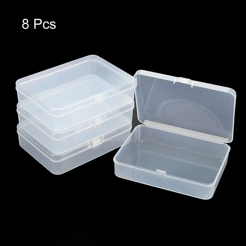 Unique Bargains Rectangular Storage Container With Hinged Lid For Beads Craft 8 Pcs 4.53x3.35x1.1 Inch