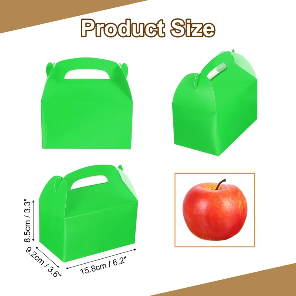 These gable boxes are versatile and perfect for any occasion. They are designed to hold a variety of items such as popcorn, toys, party favors, cupcakes, muffins, cookies, sweets, and candles. The boxes are sturdy and reusable, featuring handles for easy transportation. Their solid color design allows for personalization with patterns, designs, stickers, or drawings, making them ideal for matching with gifts. Easy to assemble and store, they come flat-packed and fold in on themselves to stay closed. Perfect for weddings, birthday parties, bridal showers, and other social gatherings.