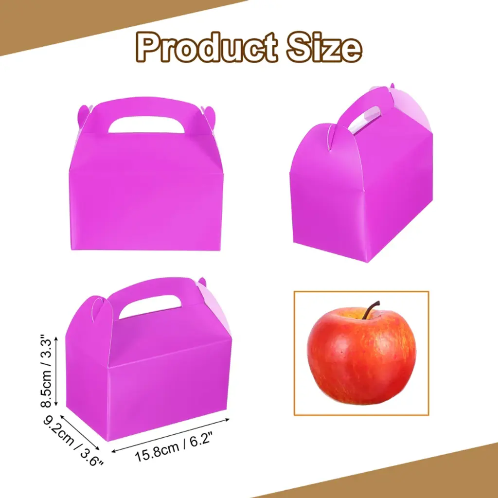 These gable boxes are versatile and perfect for any occasion. They are designed to hold a variety of items such as popcorn, toys, party favors, cupcakes, muffins, cookies, sweets, and candles. The boxes are sturdy and reusable, featuring handles for easy transportation. Their solid color design allows for personalization with patterns, designs, stickers, or drawings, making them ideal for matching with gifts. Easy to assemble and store, they come flat-packed and fold in on themselves to stay closed. Perfect for weddings, birthday parties, bridal showers, and other social gatherings.