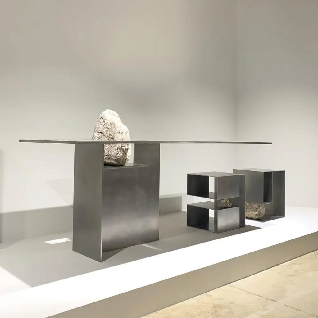 Unique Box-Like Structure With Natural Stone, Stainless Stool By Lee Sisan