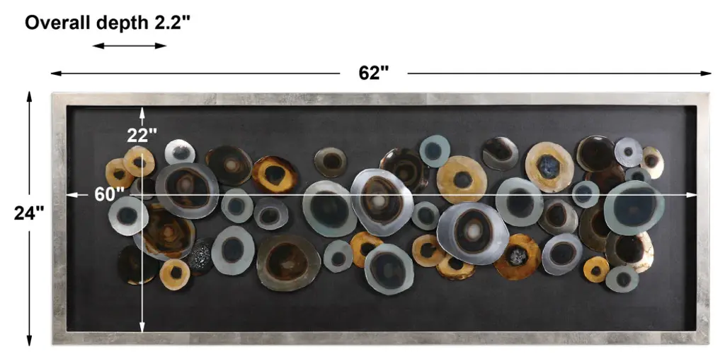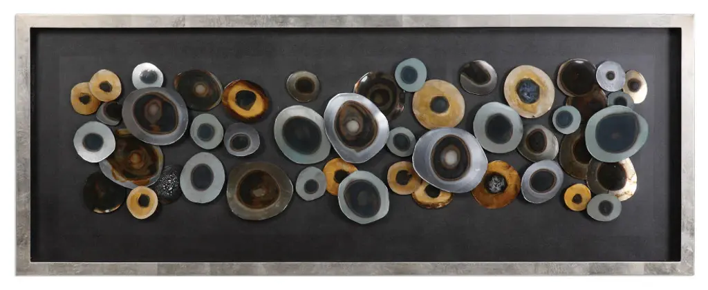 Uttermost''s wall art combines premium quality materials with unique high-style design.Abstract in design, this art features overlapping, blow torched iron discs with hand painted acrylic accents in''tones of silver, brown and antique gold. The art is under glass and is encased by a lightly antiqued silver leaf frame.With the advanced product engineering and packaging reinforcement, uttermost maintains some of the lowest damage rates in the industry. Each product is designed, manufactured and packaged with shipping in mind. Bob and belle cooper founded the uttermost company in 1975, and it is still 100% owned by the cooper family. The uttermost mission is simple and timeless: to make great home accessories at reasonable prices. Inspired by award-winning designers, custom finishes, innovative product engineering and advanced packaging reinforcement, uttermost continues to deliver on this mission. For over 30 years, uttermost has enjoyed steady growth with over 200 employees working in its rocky mount, virginia factories totaling 600,000 square feet. It also has a factory in china and a state-of-the-art west coast distribution center for increased capacity and faster shipping to west coast retailers and customers. Uttermost is proud to support many of the worldes most prestigious home-furnishing customers with its products and services. Uttermost believes its success is largely based on its commitment to three key principles: proving superior customer service, maximizing product value through great design and sharp pricing, and treating its employees, sales representatives, and designers as partners in business.