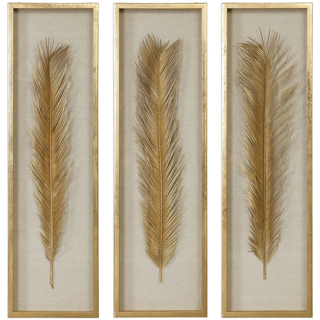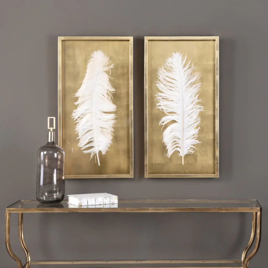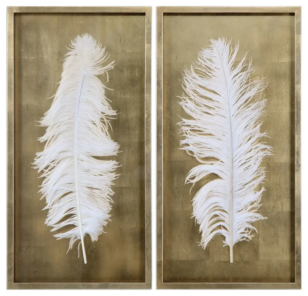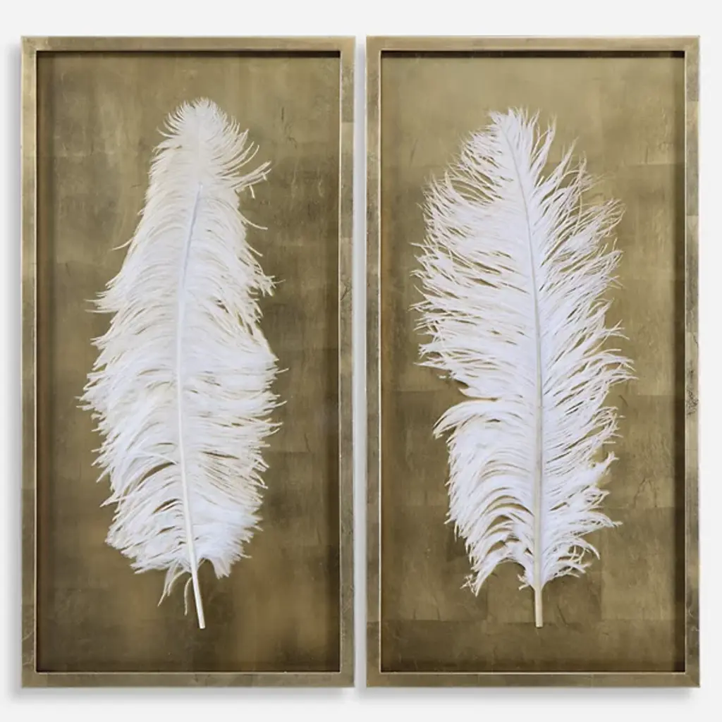 Authentic Lush White Feathers, Under Glass, Showcased In A Pine Wood Shadow Box Featuring A Rich Gold Leaf Finish. May Be Hung Horizontal Or Vertical. Uttermost''s Wall Art Combines Premium Quality Materials With Unique High-style Design. With The Advanced Product Engineering And Packaging Reinforcement, Uttermost Maintains Some Of The Lowest Damage Rates In The Industry. Each Product Is Designed, Manufactured And Packaged With Shipping In Mind. DimensionsDepth: 1. 5 in. Width: 17. 125 in. Height: 33. 125 in.