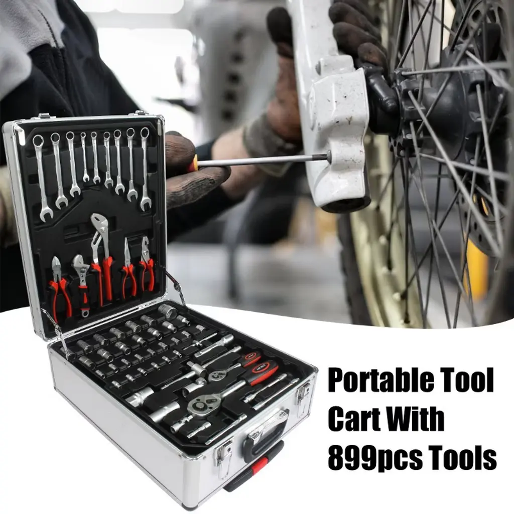 Vasip 899pcs Home Repair Tool Set Kit, Toolbox Storage Case With 4 Drawers, General Household Tool Kit With Rolling Tool Box