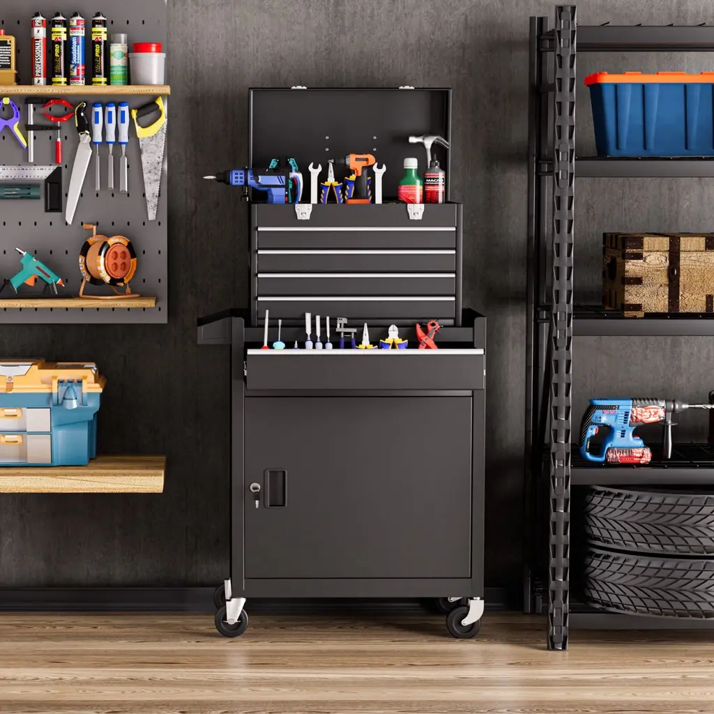 Veikous Rolling Tool Chest Cabinet Garage Storage Toolbox With Universal Lockable Wheels - N/a - Black