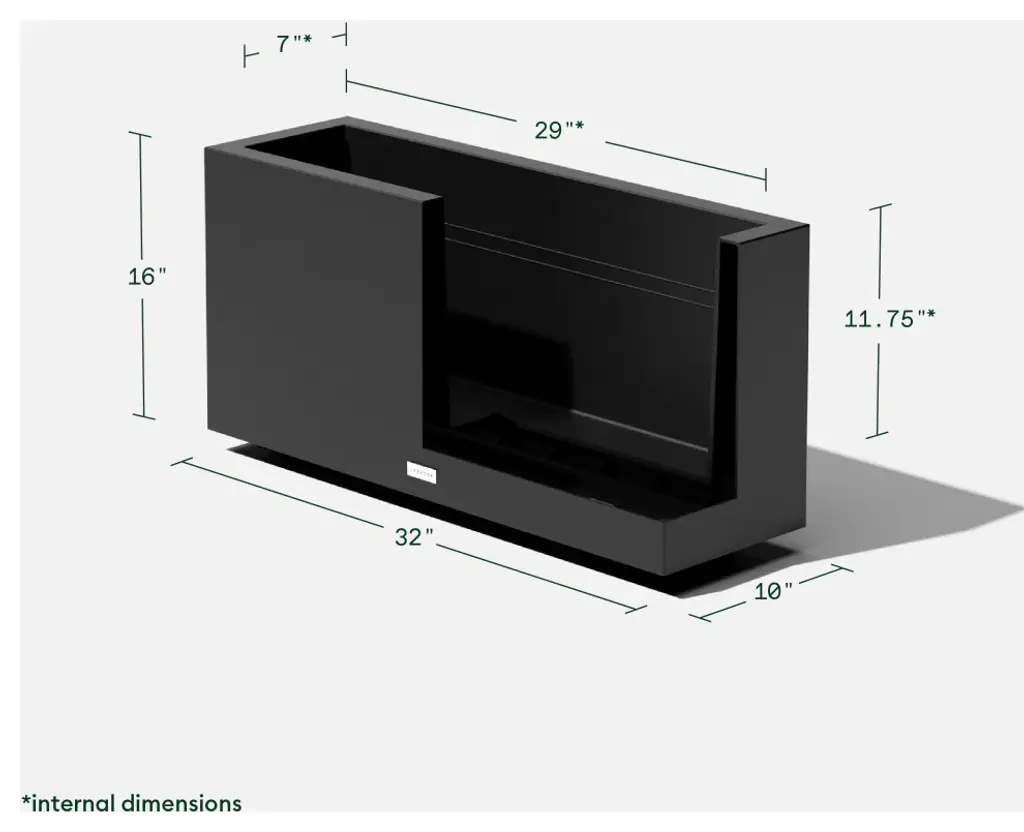 Veradek Block Series Long Box Planter, Black, 16.25"h X 10"w X 32"l