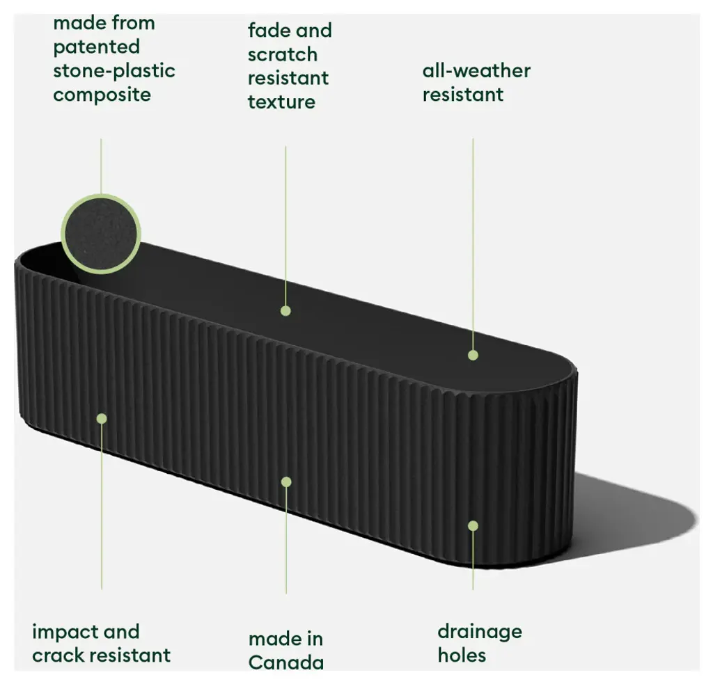 Proudly display your favorite blooms this season with the Veradek Demi Series Window Box planter. Inspired by Roman columns, its softened lines and fluted details add a subtle hint of texture to the windowsill or balcony. This sturdy yet lightweight planter is crafted from a patented plastic-stone composite, making it resistant to cracks, fading and UV damage allowing it to withstand extreme temperatures ranging from -20 to +120 degrees. Veradek planters are proudly designed and made in Canada, so you can rest assured that your products are made to last. With a combination of contemporary design and quality materials, the Demi Window Box adds the finishing touches to any space, inside or out.