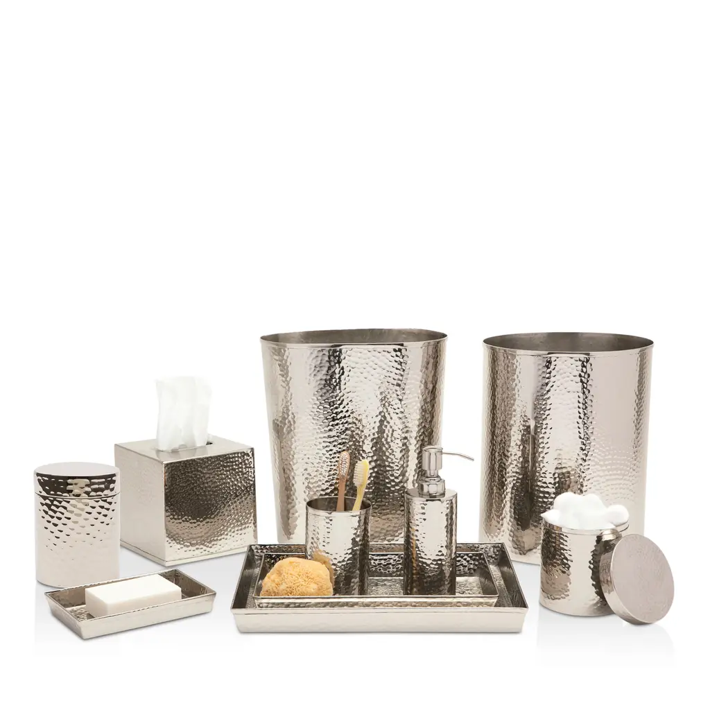 Light up the bath with the shine of the Verum collection from Pigeon & Poodle. A bright nickel finish is hammered by hand for a look that's at once shimmery, sleek and sophisticated, with a pebbled texture that plays with reflected light.