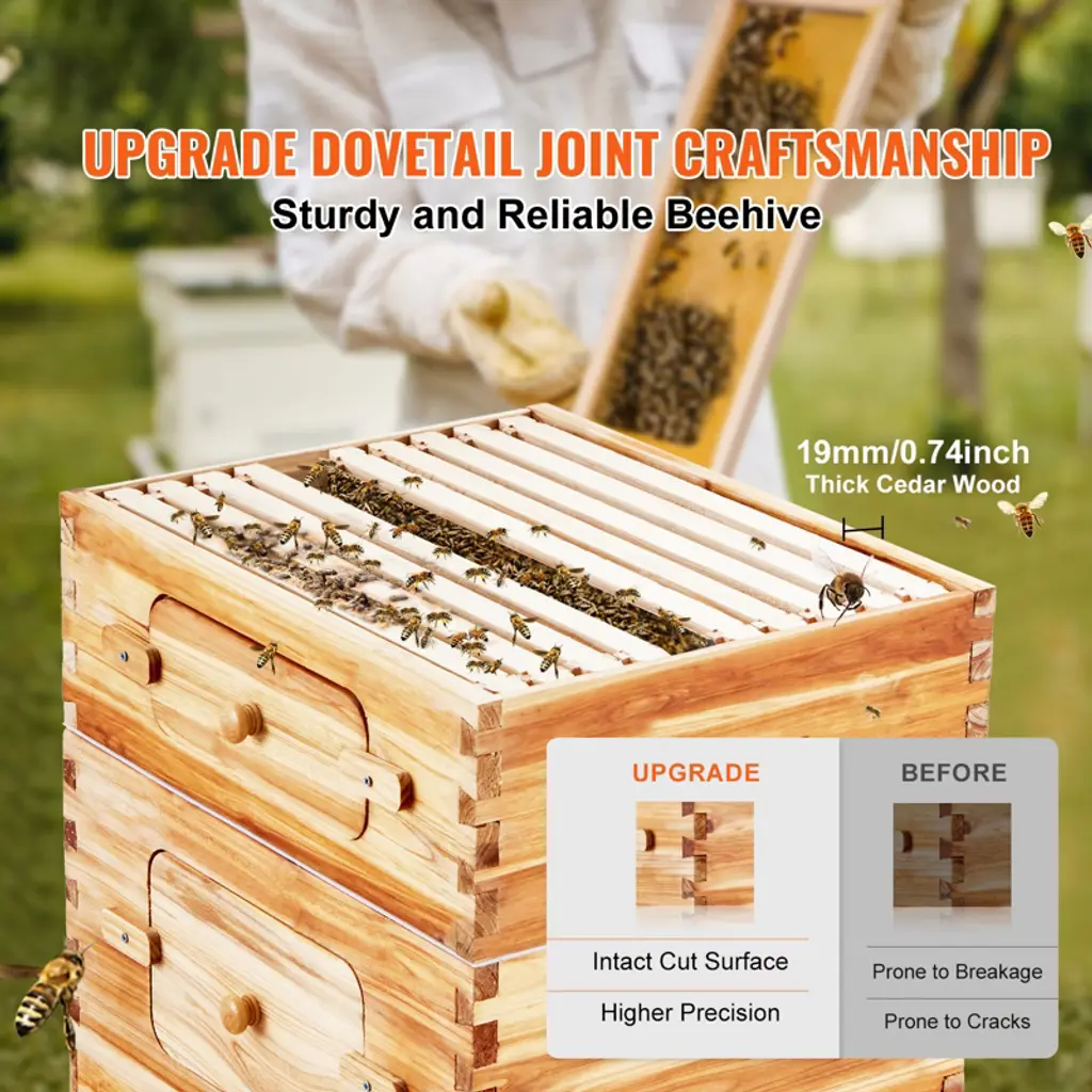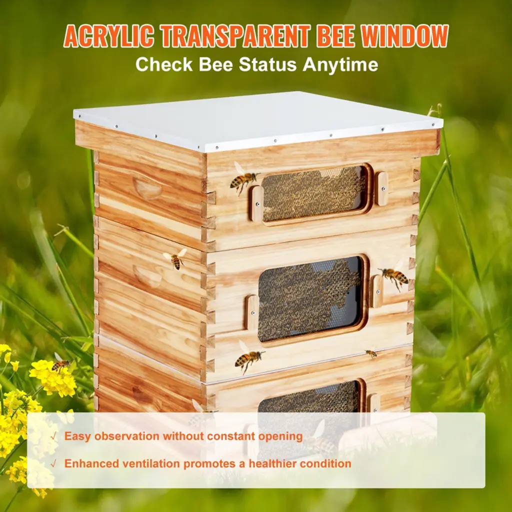 Vevor Bee Hive 30 Frame Bee Hives Starter Kit,beeswax Coated Fir Wood, 2 Deep + 1 Medium Bee Boxes Langstroth Beehive Kit,transparent Acrylic Windows