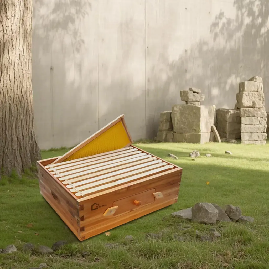 Feature: Sturdy and Durable: Crafted with high-quality fir wood measuring 0.74 inches thick, combined with precise dovetail joinery, creating a hive that is both sturdy and long-lasting. Designed for outdoor use, capable of withstanding harsh weather conditions, ensuring reliability for long-term use. Transparent Bee Windows: Equipped with acrylic transparent windows, allowing for easy observation of bee and hive conditions without the need for frequent disturbance. Ventilation ports ensure airflow inside the hive, reducing the growth of harmful substances and maintaining hive health. Full Beeswax Coating: The hive exterior is coated with a layer of beeswax, creating an environment close to the bees' natural habitat. Additionally, ABS hive frames coated with beeswax attract and stabilize the bee colony. Simple Installation: Carefully designed dovetail joints not only ensure the structural integrity of the hive but also make the installation process simple and quick. Even users new to beekeeping can easily assemble and maintain it. Superior Spacious Design: The interior of the hive is spacious, equipped with 20 medium frame lure hive frames and 20 deep frame brood boxes, providing ample space for bee growth and activity. This design helps increase colony productivity and honey yield. Package Content Bee Hive x 1 Galvanized Bolt M4x30 x 4 Galvanized Self-Tapping Screw M4x20 x 8 Round Mushroom Knob x 4 Bee Window Fixed Wooden Blocks x 8 Top Cover x 1 Entrance Reducer x 1 Queen Excluder x 1 Acrylic Panel Windows x 4 Self-Tapping Screw M2.6 x 10 x 16 1-Inch Iron Nails x 160 User Manual x 1