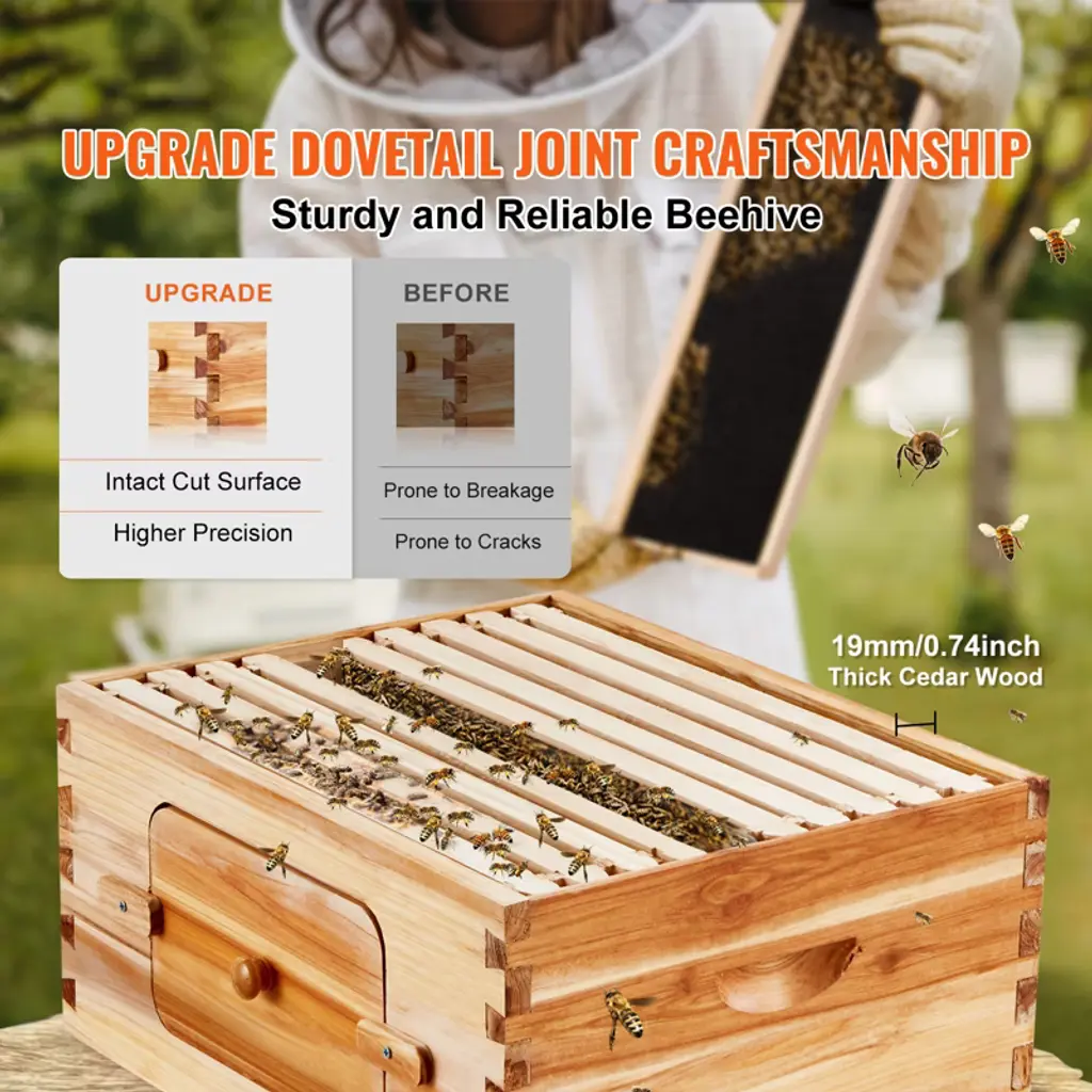 Vevor Bee Hive Deep Box Starter Kit, 100% Beeswax Coated Natural Cedar Wood, Langstroth Beehive Kit With 10 Frames And Foundations
