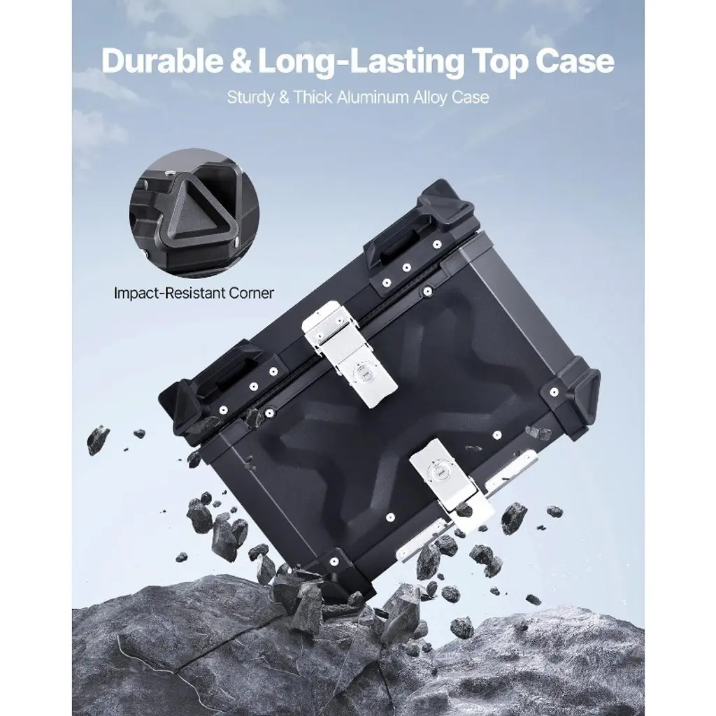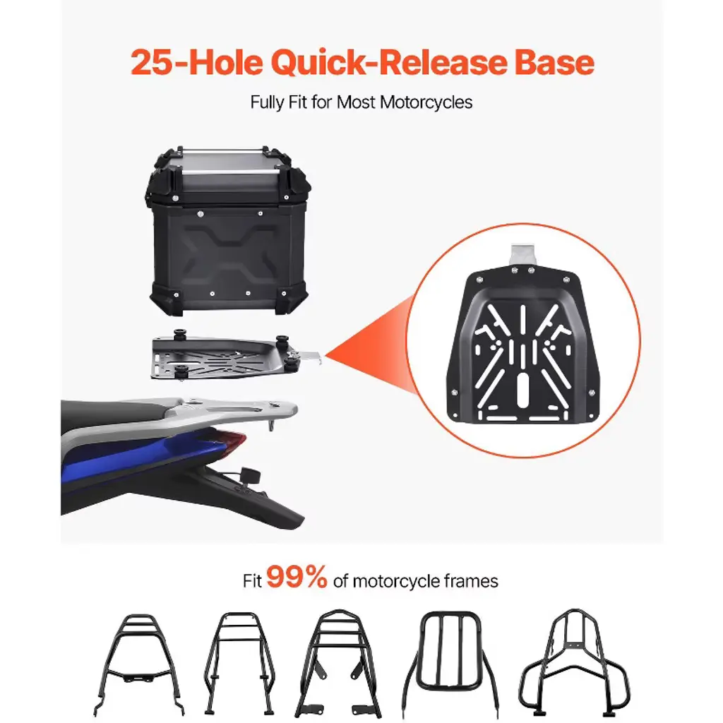 Vevor Motorcycle Top Case, 45l Waterproof Detachable Motorcycle Top Box With Lock & Back Cushion, Fit For 99% Of Motorcycle Frames, Black