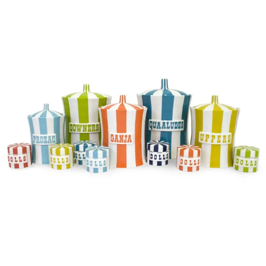 Guilty Pleasures. Celebrate life's little helpers. Our iconic canisters show off your indulgences, from sweets to sedatives, in irresistible hues. Cluster a few on your counter, keep one bedside for late-night cravings, or go wild and collect them all. Our Vice Collection starts its journey in our Soho studio where Jonathan and his team design and sculpt the models. Each high-fired porcelain canister is glazed with a graphic black and white or rich color finish.