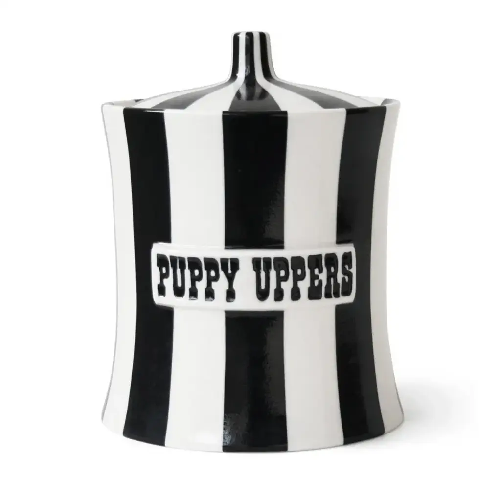 Guilty Pleasures. Celebrate life's little helpers. Our iconic canisters show off your indulgences, from sweets to sedatives, in irresistible hues: each high-fired porcelain canister is hand-painted with a graphic black and white or rich color finish. Cluster a few on your counter, keep one bedside for late-night cravings, or go wild and collect them all.