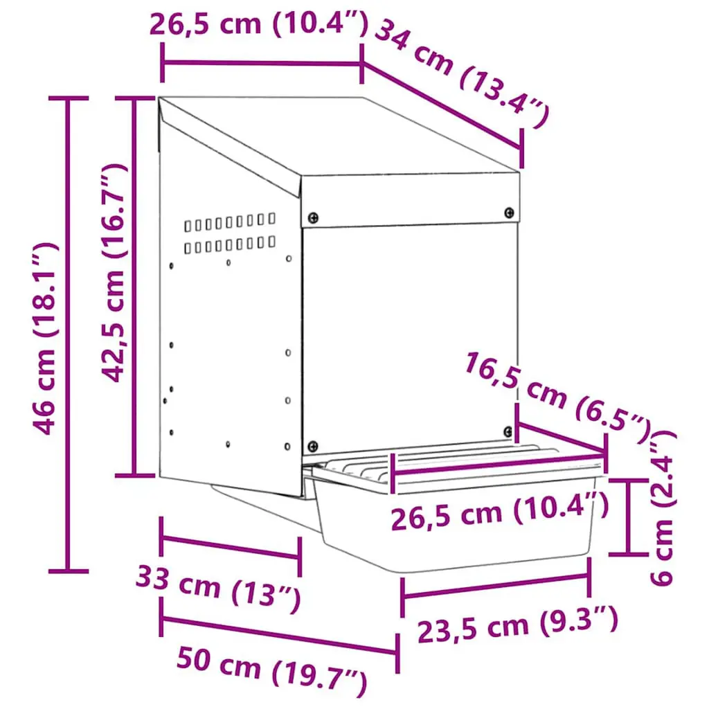 Upgrade your poultry farming experience with the chicken nesting box, providing hens with private, comfortable laying space.Robust and durable material: Crafted from galvanised steel and sturdy polypropylene plastic, this nesting box is built to last, offering long-lasting performance and protection for your chickens against harsh outdoor conditions.Convenient egg collection: The easy-lift lid and roll-out design allow for effortless egg collection while keeping the chickens undisturbed. The thoughtful design promotes a calm environment for your flock, making egg collection smooth, hassle-free, and easy to maintain.Effortless installation: Designed with an open front that seamlessly integrates into wall cut-outs, the nesting box offers easy access for hens while maintaining a tidy, space-saving setup. Ideal for wooden walls with pre-prepared cut-outs, it ensures quick and secure installation with minimal effort.Protected laying space for chickens: With its relatively enclosed design, this chicken nesting box encourages hens to lay eggs comfortably, reducing the risk of eggs being laid outside the box. It offers a dark, clean retreat for undisturbed egg laying—an ideal accessory for any chicken coop or chicken house.Easy to clean: The tray is easily removable for cleaning, and the smooth surfaces of both the tray and the box make cleaning effortless, promoting a cleaner and more hygienic environment for your chickens.Good to know:To avoid scratches, it is recommended to wear gloves during installation.The product is suitable for mounting on wooden walls.