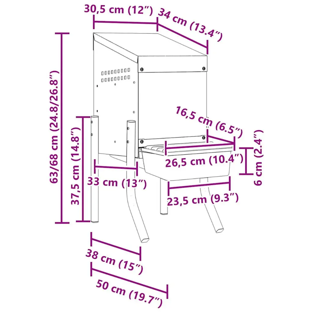 Upgrade your poultry farming experience with the chicken nesting box, providing hens with private, comfortable laying space.Robust and durable material: Crafted from galvanised steel and sturdy polypropylene plastic, this nesting box is built to last, offering long-lasting performance and protection for your chickens against harsh outdoor conditions.Convenient egg collection: The easy-lift lid and roll-out design allow for effortless egg collection while keeping the chickens undisturbed. The thoughtful design promotes a calm environment for your flock, making egg collection smooth, hassle-free, and easy to maintain.Customisable height: The nesting box is simple to install, as it comes with the necessary accessories. Thanks to additional drill holes, you can customise the installation of legs at two different heights. Just follow the included instructions for an easy setup.Thoughtful ventilation: The nesting box is designed with air vents and an open front to ensure optimal airflow, maintaining a dry, odour-free, and comfortable environment for your chickens while preventing moisture and odour buildup.Effortless cleaning: The tray is easily removable for quick cleaning, while the smooth surfaces of both the tray and the box ensure a hassle-free experience, helping maintain a cleaner and more hygienic environment for your chickens.Good to know:To avoid scratches, it is recommended to wear gloves during installation.