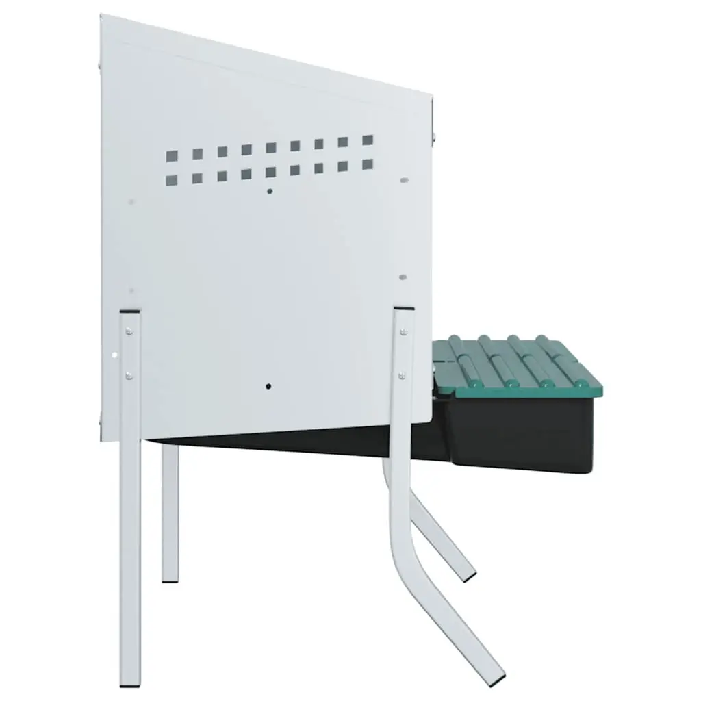 Upgrade your poultry farming experience with the chicken nesting box, providing hens with private, comfortable laying space.Robust and durable material: Crafted from galvanised steel and sturdy polypropylene plastic, this nesting box is built to last, offering long-lasting performance and protection for your chickens against harsh outdoor conditions.Convenient egg collection: The easy-lift lid and roll-out design allow for effortless egg collection while keeping the chickens undisturbed. The thoughtful design promotes a calm environment for your flock, making egg collection smooth, hassle-free, and easy to maintain.Customisable height: The nesting box is simple to install, as it comes with the necessary accessories. Thanks to additional drill holes, you can customise the installation of legs at two different heights. Just follow the included instructions for an easy setup.Thoughtful ventilation: The nesting box is designed with air vents and an open front to ensure optimal airflow, maintaining a dry, odour-free, and comfortable environment for your chickens while preventing moisture and odour buildup.Effortless cleaning: The tray is easily removable for quick cleaning, while the smooth surfaces of both the tray and the box ensure a hassle-free experience, helping maintain a cleaner and more hygienic environment for your chickens.Good to know:To avoid scratches, it is recommended to wear gloves during installation.