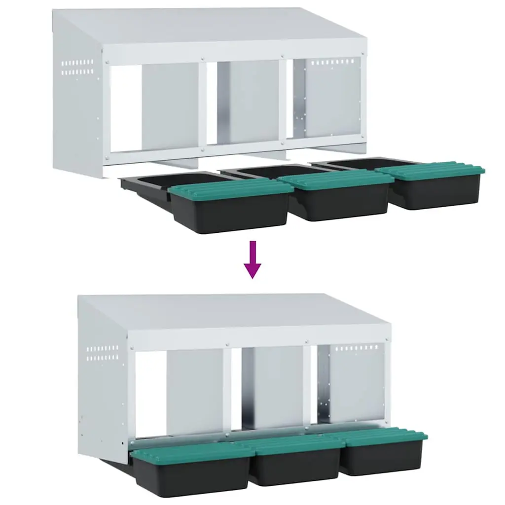 Vidaxl Chicken Nesting Box 3 Compartments Wall-Mounted Galvanised Steel