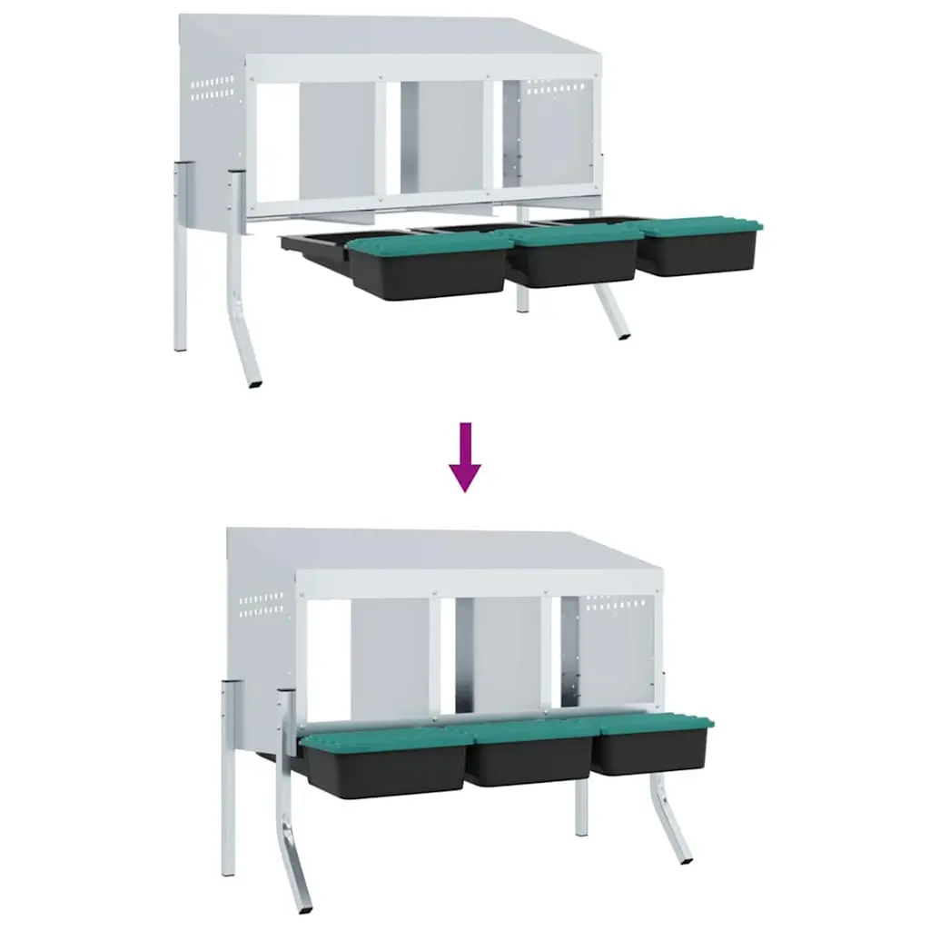Vidaxl Chicken Nesting Box 3 Compartments With Legs Galvanised Steel