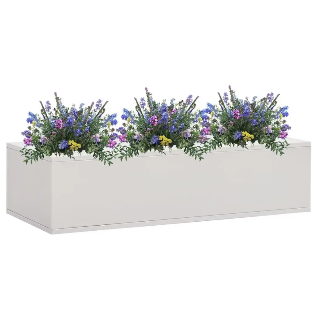 This modern planter flower box is designed to elevate your indoor or outdoor space with a sleek, minimalist look. Made from durable steel, it features three circular holder holes, perfect for displaying your favorite plants in style. The rectangular shape and matte finish blend seamlessly with contemporary décor, making it a versatile addition to offices, patios, or any area in need of a touch of greenery. Available in Anthracite and Light Gray colors, you can choose the perfect match for your setting.Key Features• Sturdy steel construction for long-lasting use• Rectangular design with three plant holder holes (7.1" diameter each)• Matte painted finish for easy cleaning and a modern appearance• Suitable for both indoor and outdoor environments• Maximum weight capacity: 44 lbsDesign & Versatility• Minimalist style fits seamlessly into contemporary spaces• Ideal for offices, patios, balconies, or gardens• Spacious dimensions: 35.4" W x 35.4" L x 9.1" H• Available in Anthracite and Light Gray to complement your décorEasy Assembly & Maintenance• Simple assembly required• Painted finish makes cleaning hassle-freeAdditional Details• Weight: 13.67 – 14.22 lbs (depending on color)• Capacity: 20 liters• Drainage: Some variants include drainage holes• SKU: 336426This planter box is perfect for anyone looking to add a modern, stylish touch to their space while providing a practical home for plants. Choose from Anthracite or Light Gray to best suit your environment.