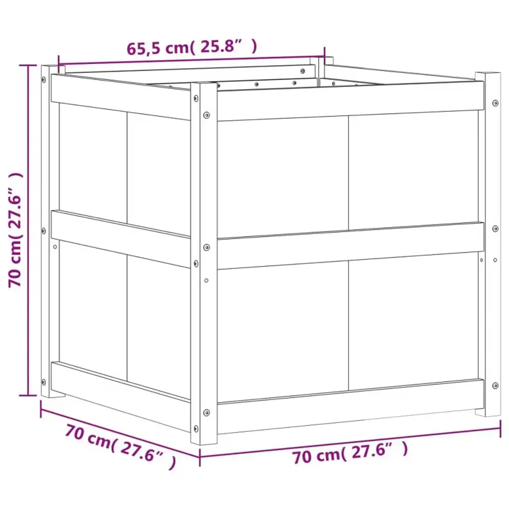 This rustic square outdoor garden planter is a practical and stylish addition to any outdoor space, including gardens, balconies, and patios. Crafted from solid pine wood, it offers a natural look that blends seamlessly with your plants and outdoor décor. The spacious design provides plenty of room for flowers, vegetables, or decorative greenery, making it a versatile choice for plant lovers.Key Features• Rustic natural wood finish for a countryside charm• Spacious 27.6 x 27.6 x 27.6 in. dimensions for generous planting capacity• Durable construction from solid pine wood for long-lasting use• Easy assembly with included components and simple instructions• Decorative inlays and clean lines for an attractive lookVersatile and Functional• Suitable for outdoor use in gardens, terraces, and patios• Plenty of space for growing a variety of plants• Sturdy build designed to withstand outdoor conditionsAvailable Options• Choose from multiple color finishes: Brown, Natural Douglas, Natural Impregnated, Natural Pine, and WhiteProduct Details• Material: Solid pine wood (some variants in solid Douglas fir wood)• Shape: Square• Weight: 38.14 lbs• Assembly required (screwdriver needed)• SKU: 837434, 837435, 837436, 837437, 837438This garden planter is perfect for anyone looking to enhance their outdoor area with a functional and decorative piece. Its natural wood construction and classic design make it a timeless choice for any garden or patio setting.